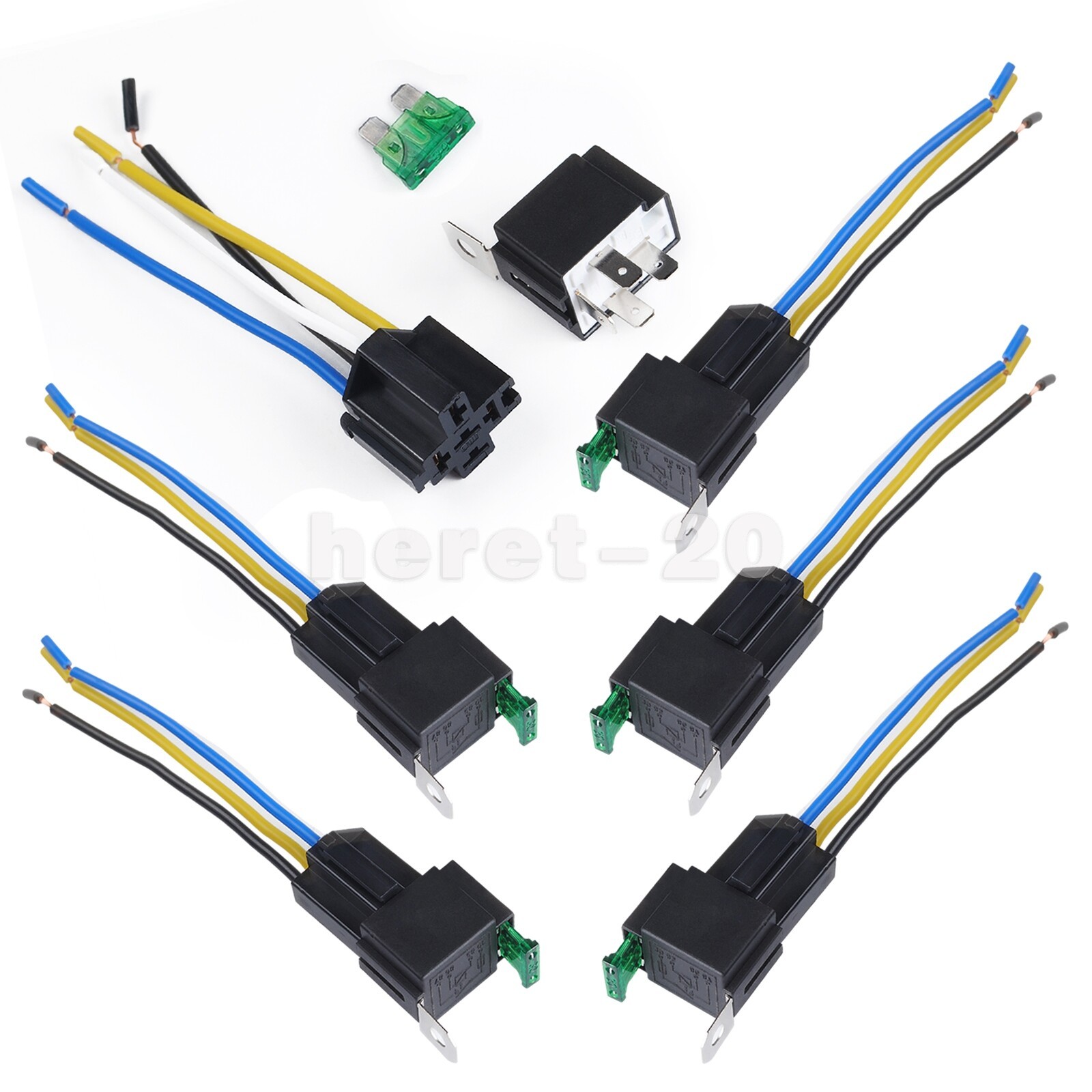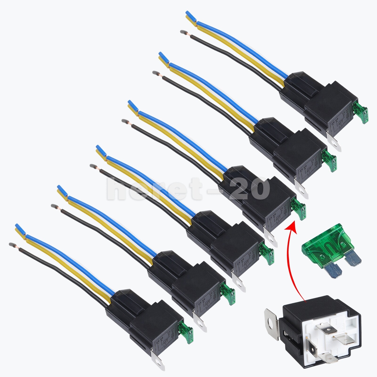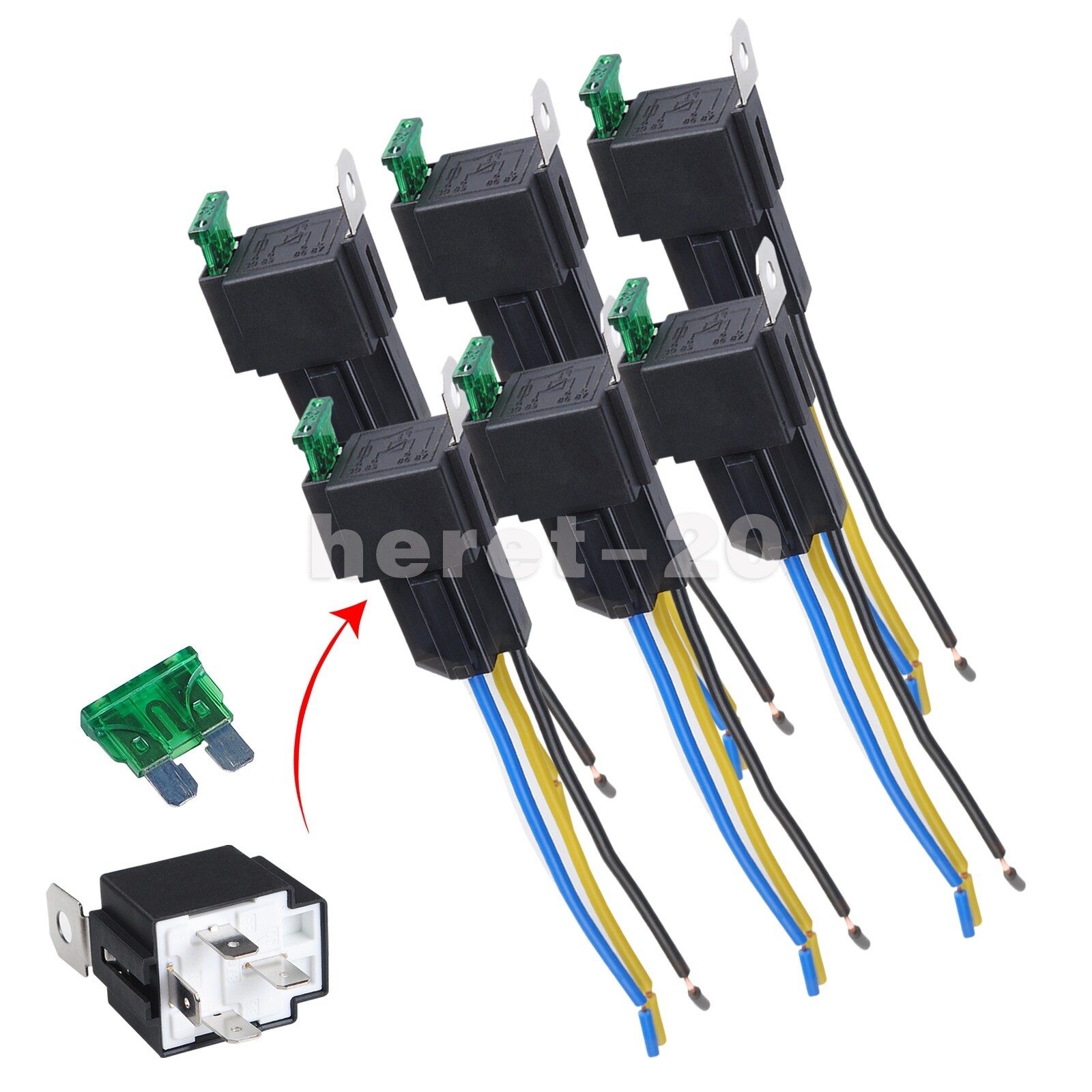 6 Pack 4 Pin Fuse Relay Switch Harness Set - Universal SPST 14 AWG Fuse 30A 12V