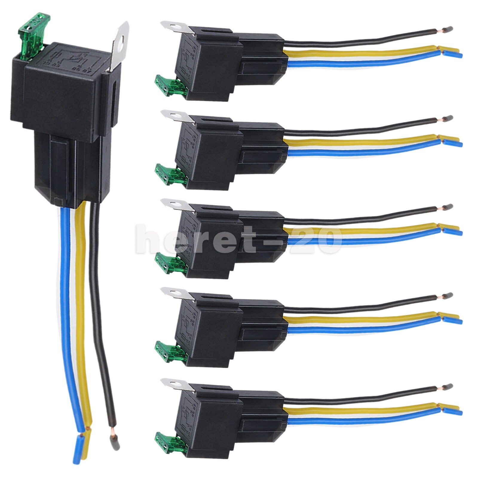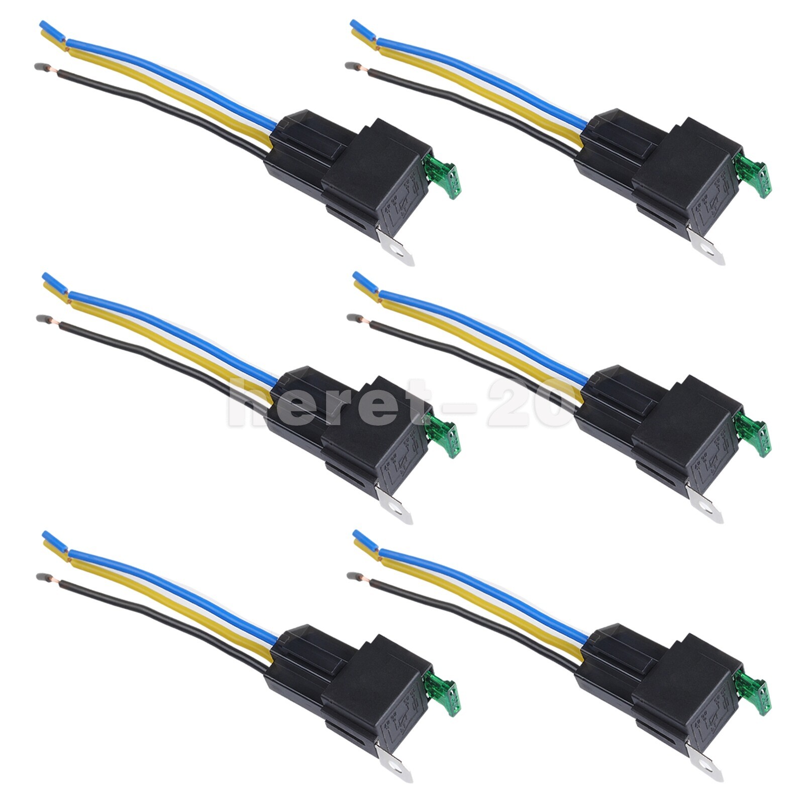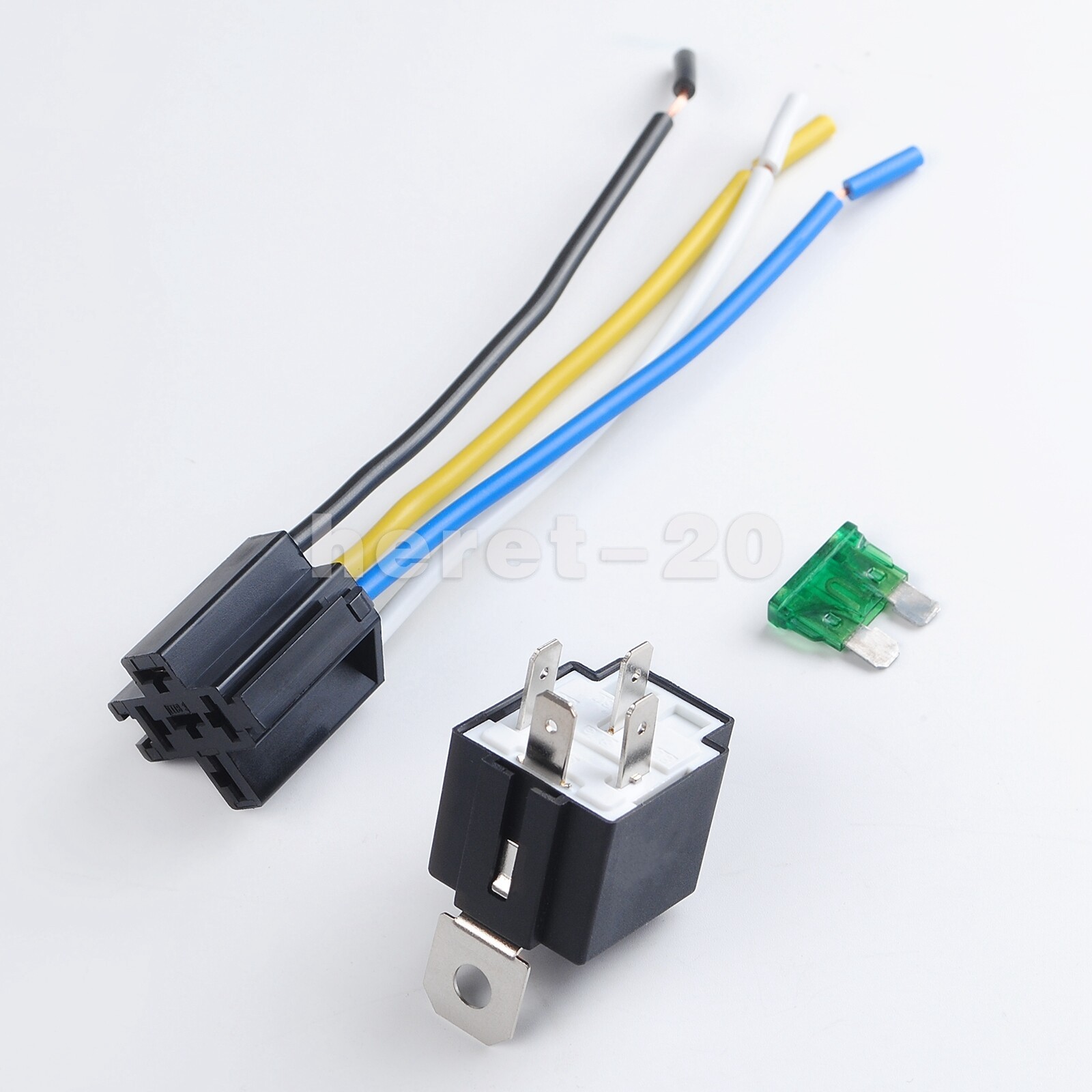 6 Pack 4 Pin Fuse Relay Switch Harness Set - Universal SPST 14 AWG Fuse 30A 12V