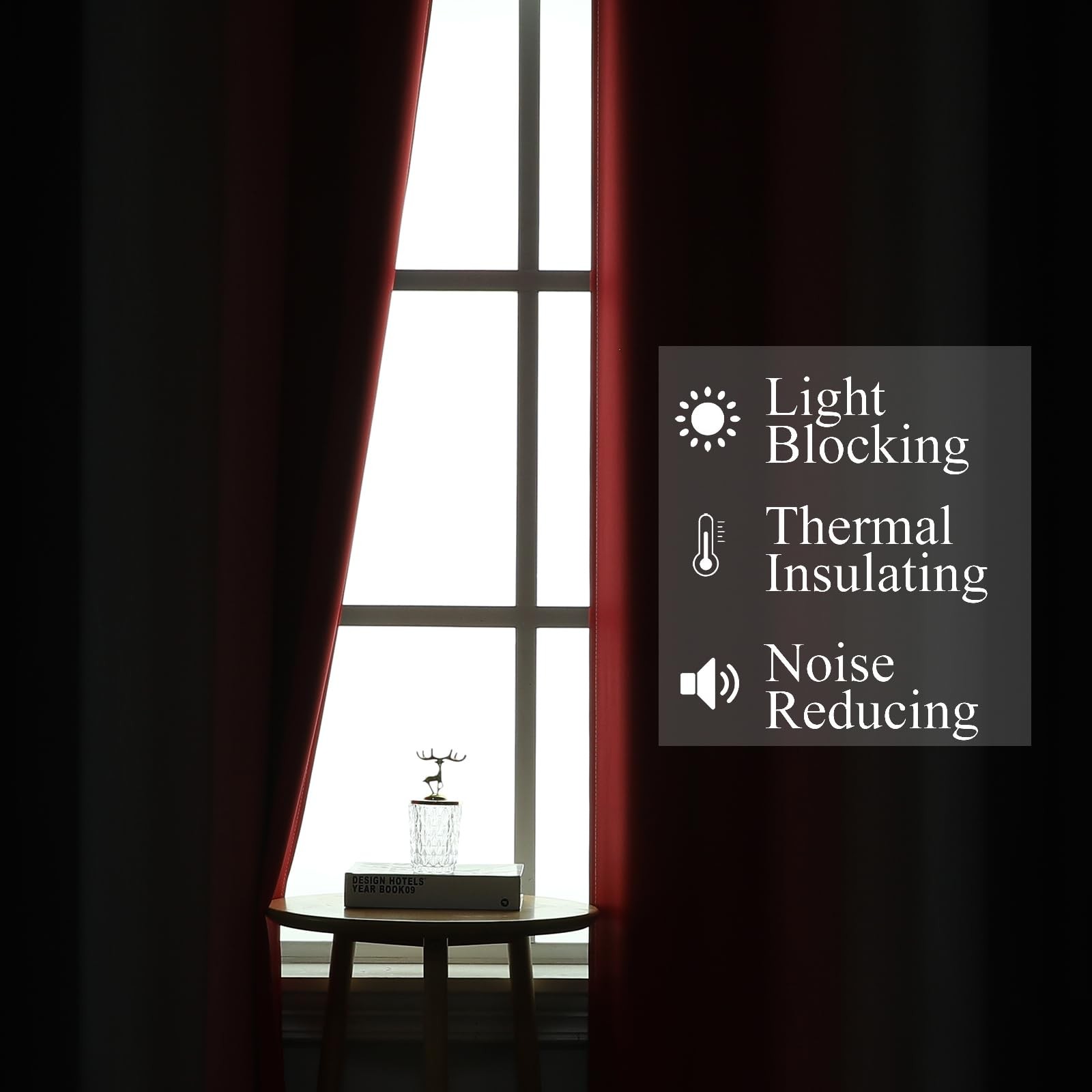 Black and Red 100 Blackout Curtains 52W x 84L Pack of 2 ,