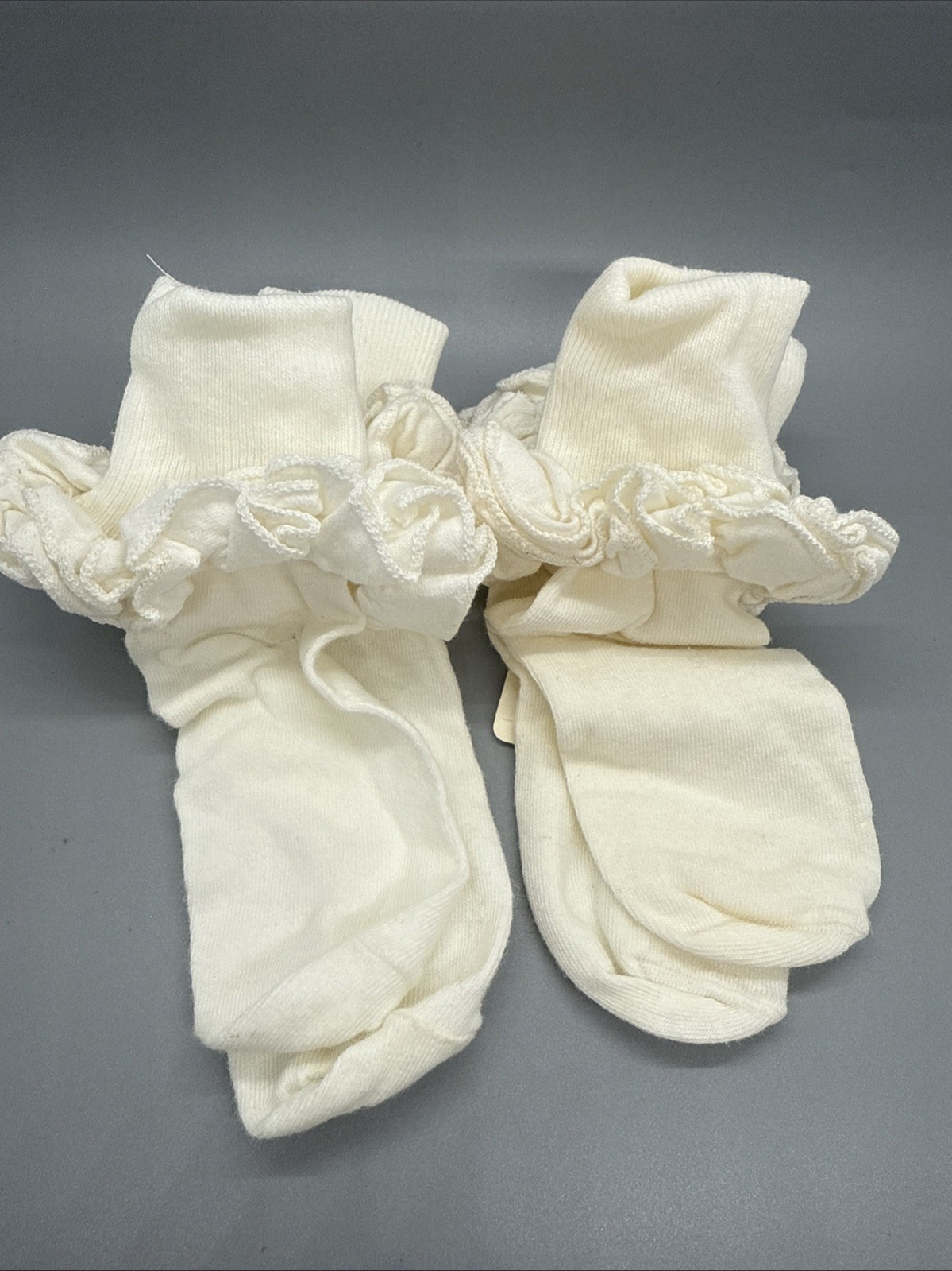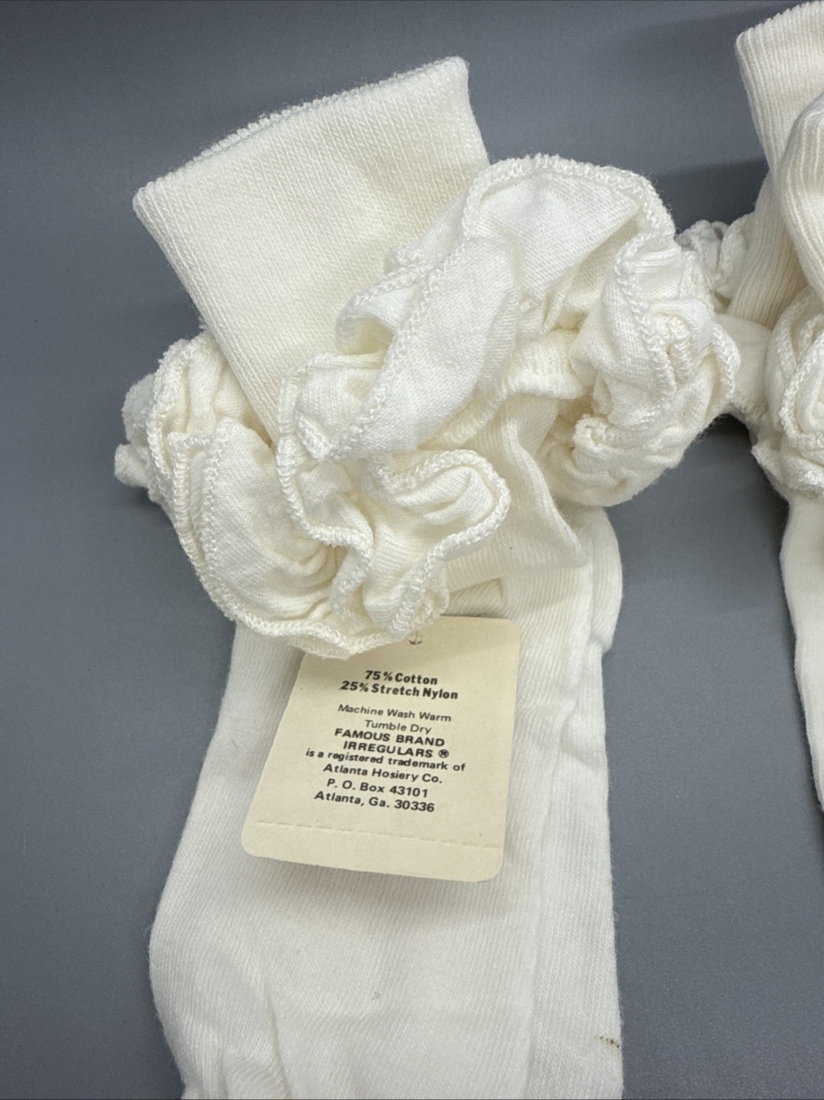 Vintage Frilly 90s Anklets Socks Girls 6-7.5 Double Ruffle Cuff USA Cotton White