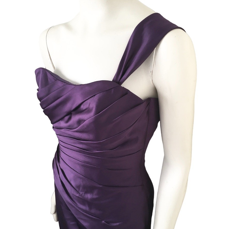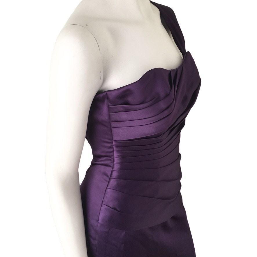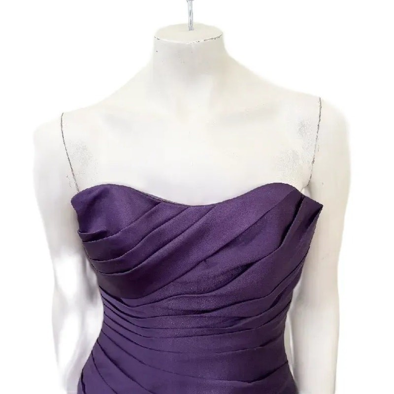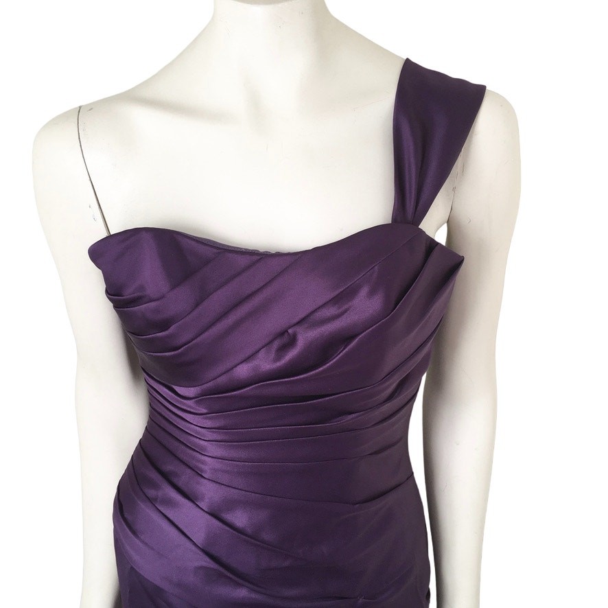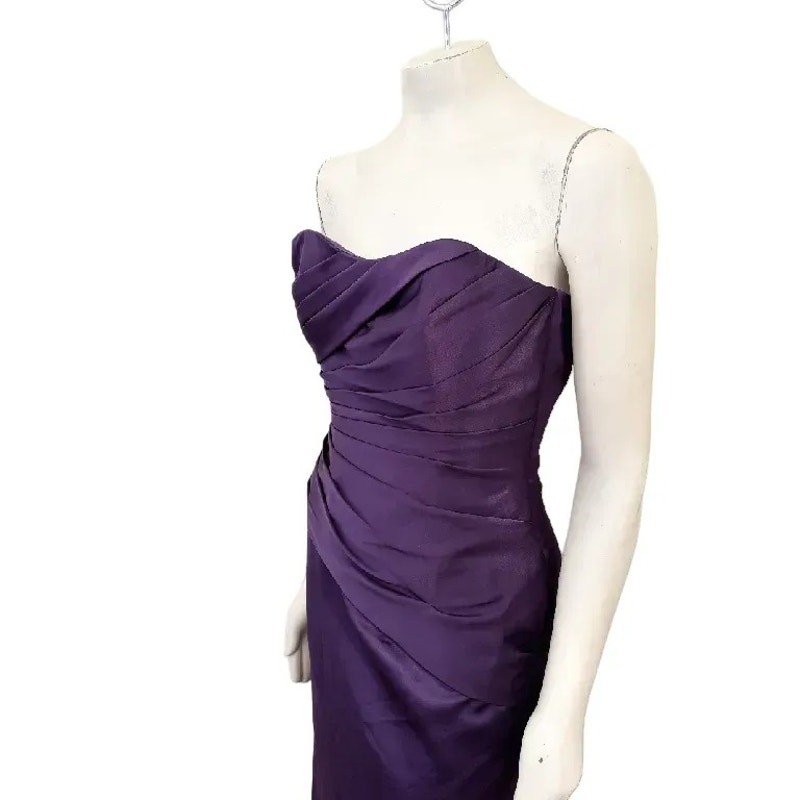 как выглядит NWT IMPRESSION BRIDAL Ruched Satin Bridesmaid Dress in Eggplant Purple WOMENS 2 фото