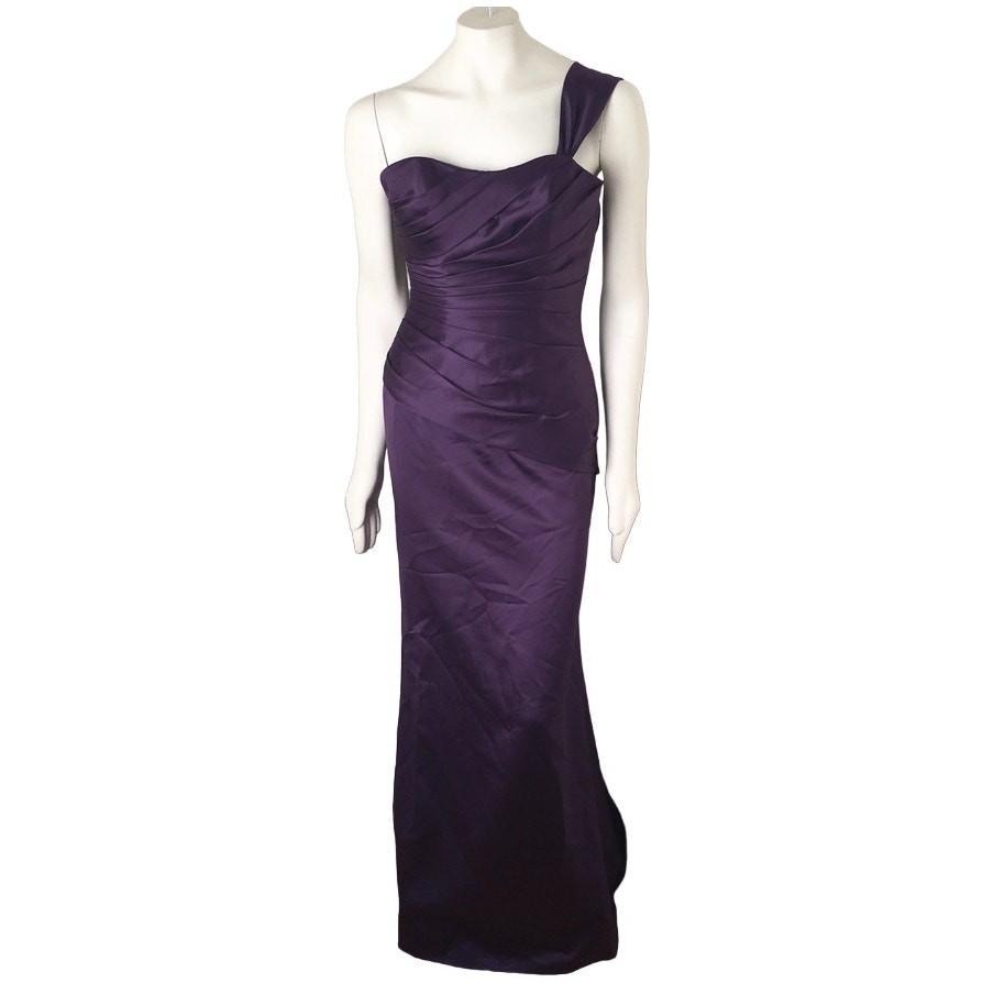 как выглядит NWT IMPRESSION BRIDAL Ruched Satin Bridesmaid Dress in Eggplant Purple WOMEN