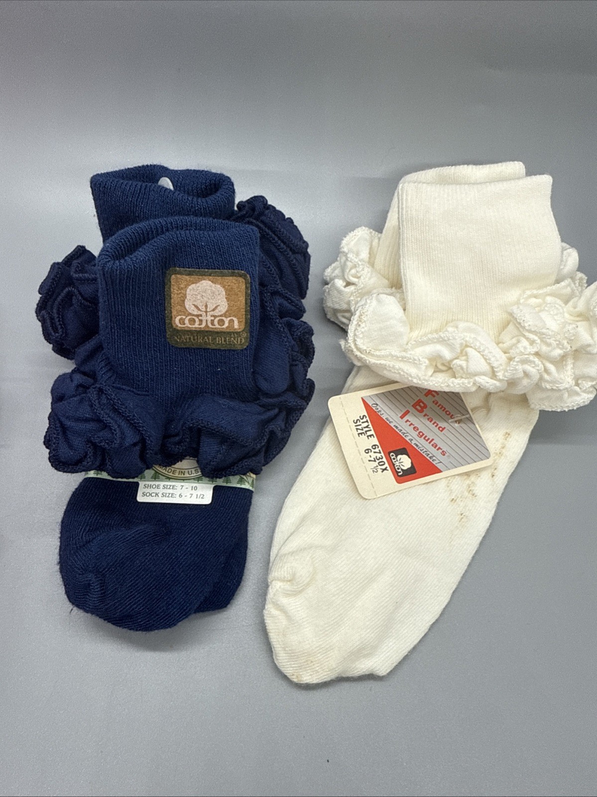 Vtg Frilly 90s Anklets Socks Girls 6-7.5 Double Ruffle Cuff USA Cotton Lot Of 6