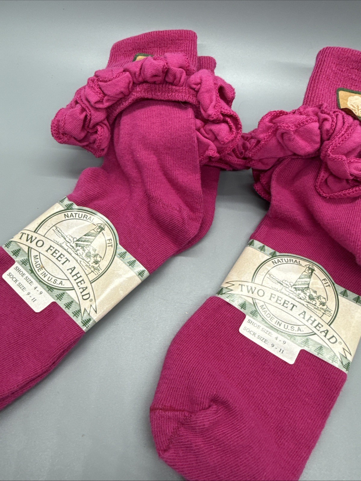 Vintage 90s Women's Double Ruffle Frilly Ankle Cuff Socks New Cotton USA Pink