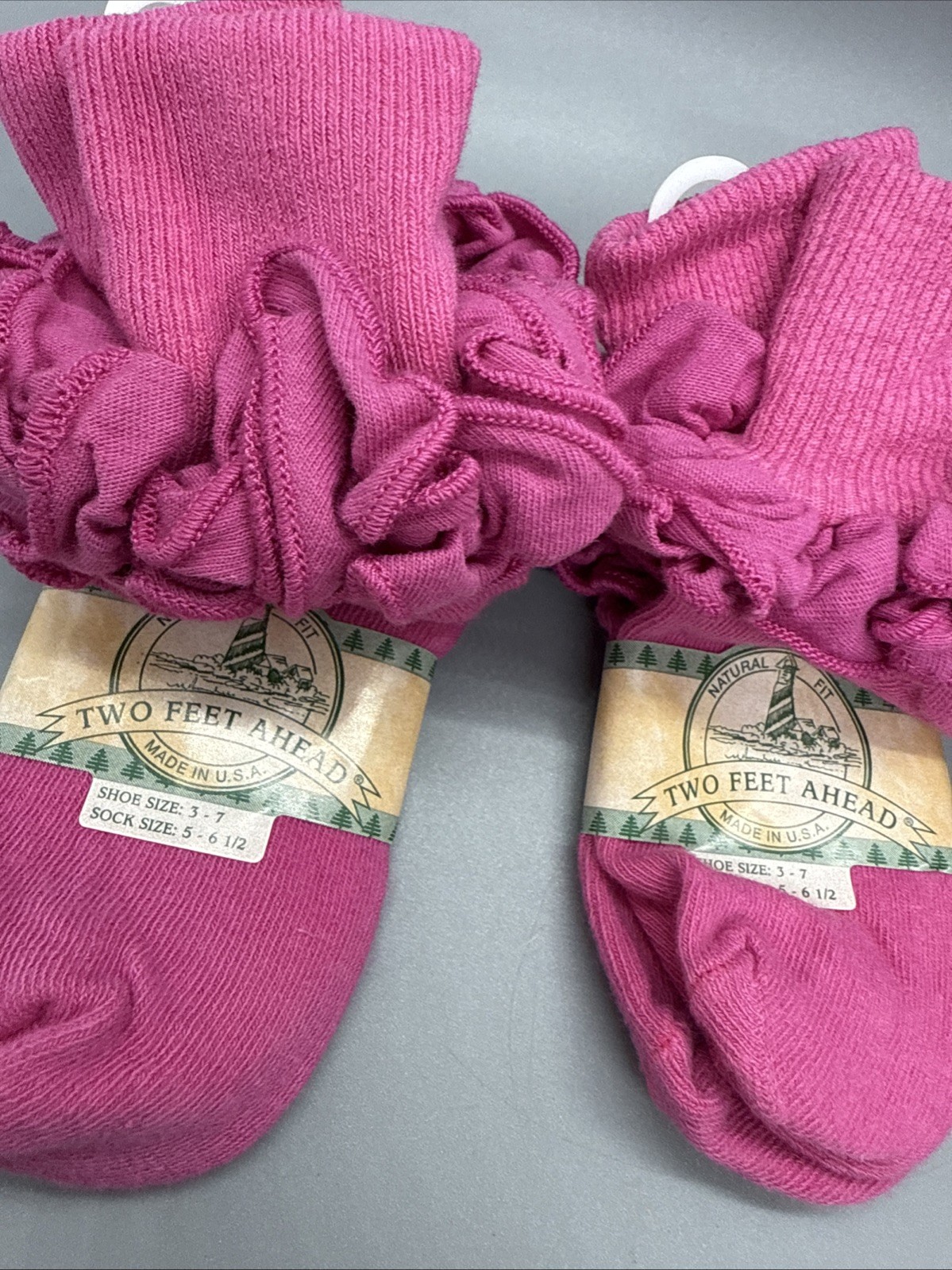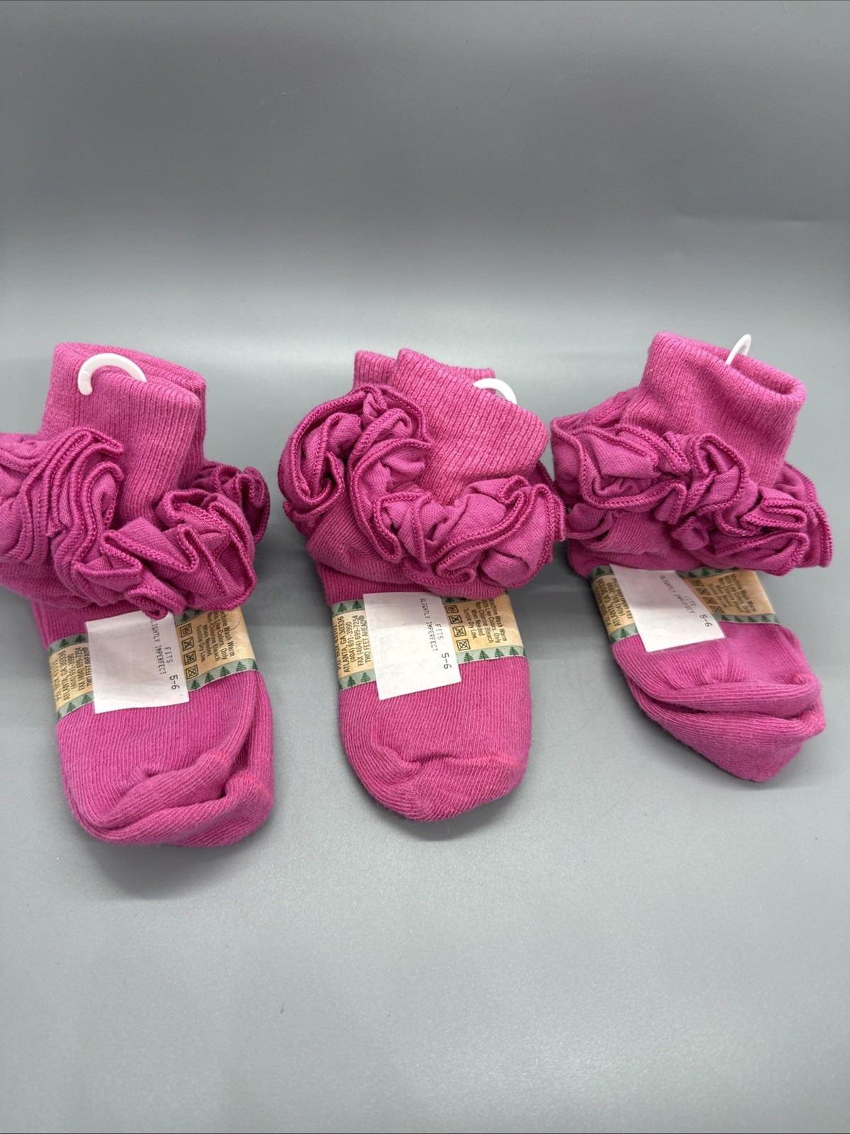 Vintage Frilly 90s Anklets Socks Girls 5-6 Double Ruffle Cuff USA Cotton Pink