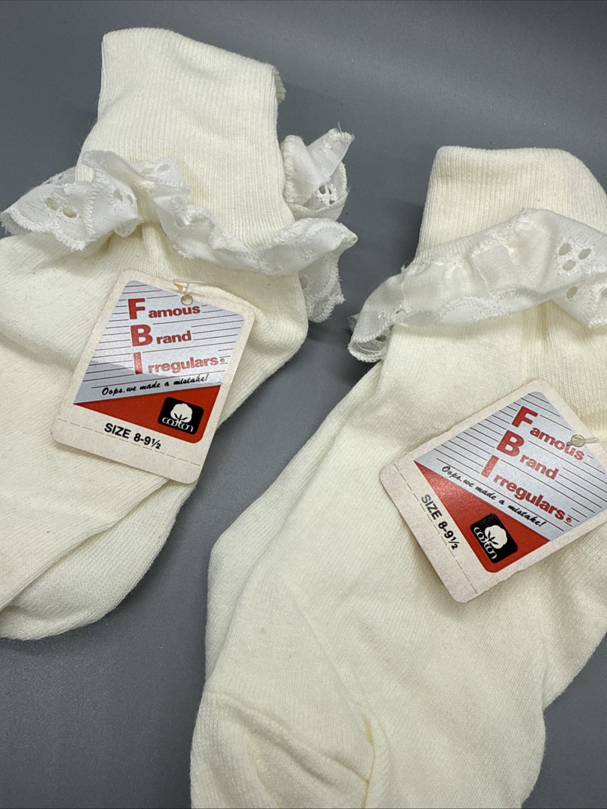 Vtg 80s-90s Women's White Lace Ruffle Frilly Ankle Socks Eyelet New Cotton USA