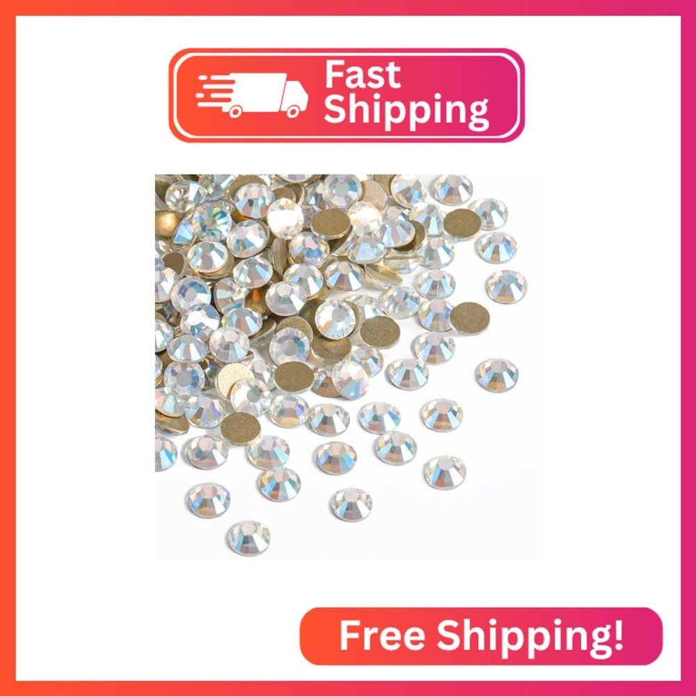 beadsland Flat Back Crystal Rhinestones Round Gems for Nail Art and Craft Glue F
