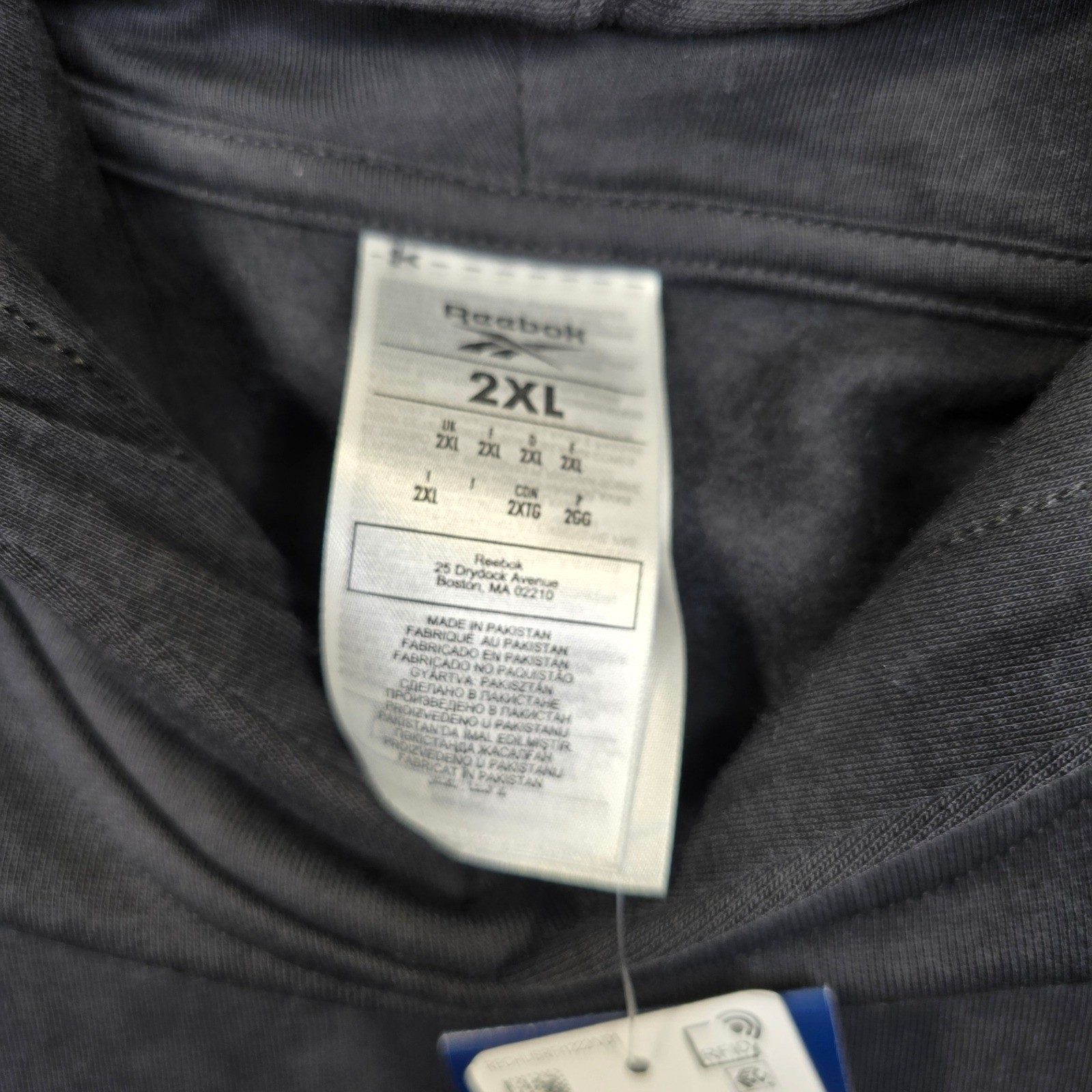 как выглядит Reebok Chenille R Logo Hoodie Mens 2XL Black Athletic Casual Sweatshirt NEW фото