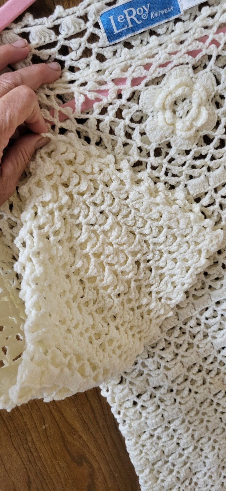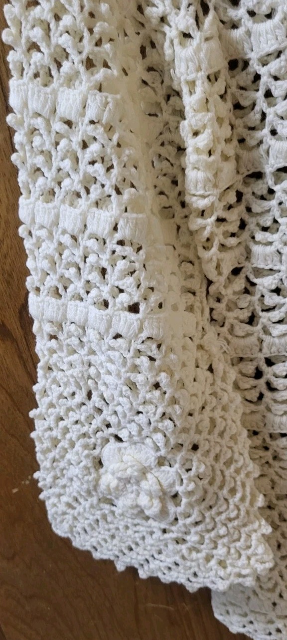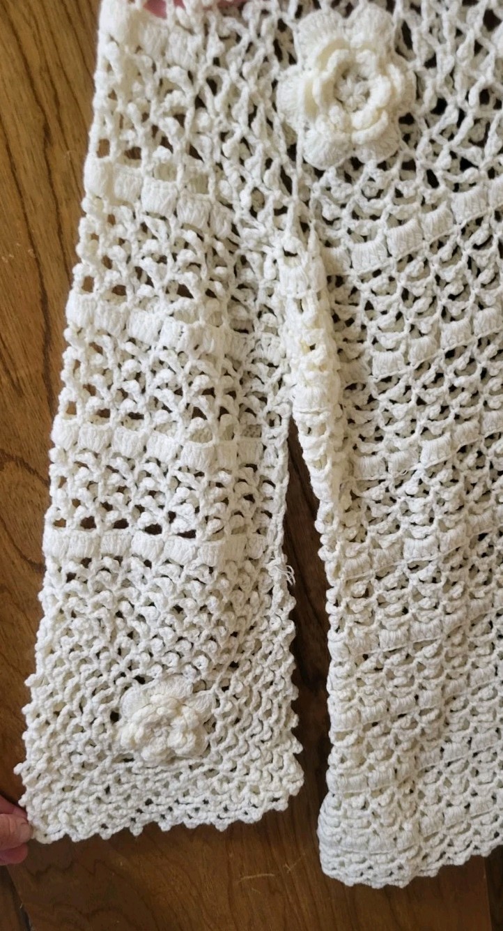 как выглядит Vintage Crochet Leroy Knit Sweater Womens Cream Rosette Flare Sleeve Size Small фото