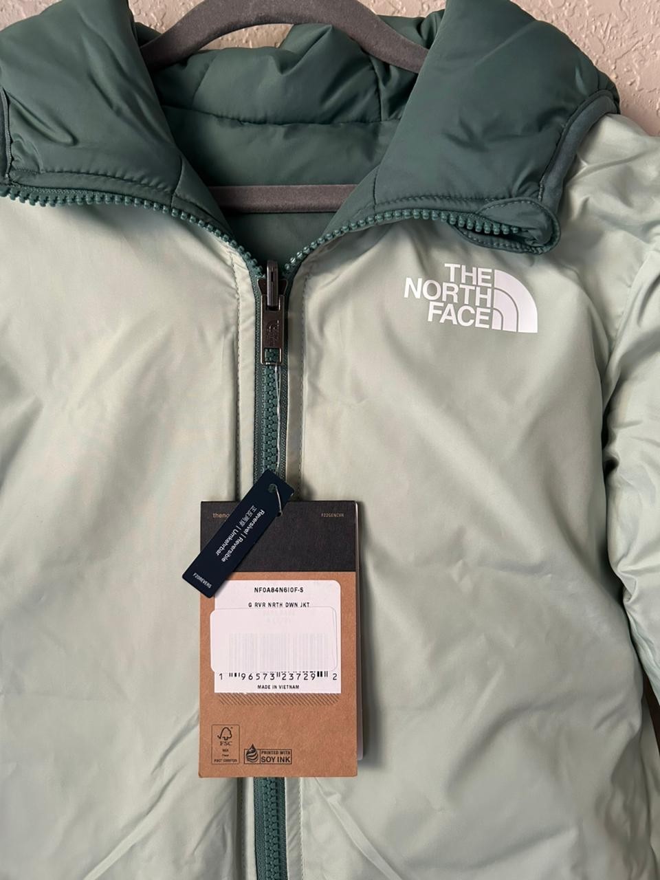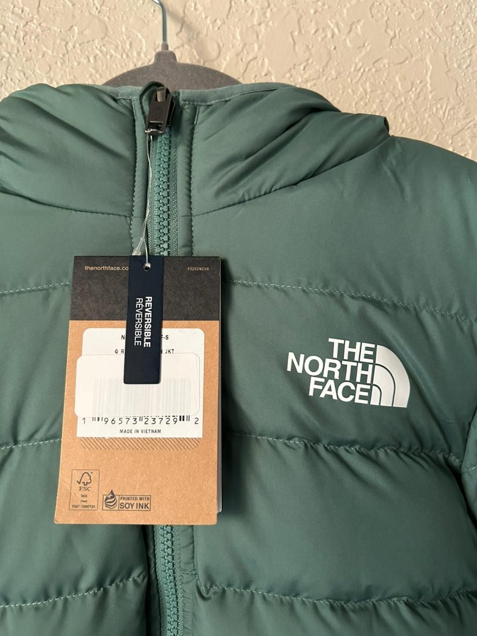 как выглядит The North Face Girls Reversible North Down Hooded Jacket-S 7-8 -Green/Lemon-New фото