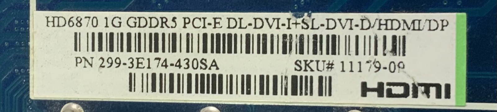 SAPPHIRE Radeon HD 6870 1GB GDDR5 PCI-E Graphics Card 299-3E174-430SA P7C