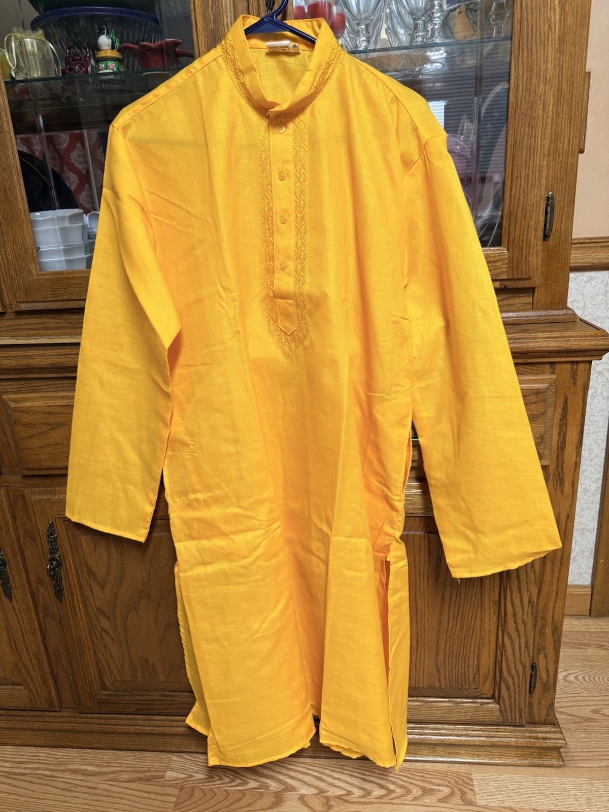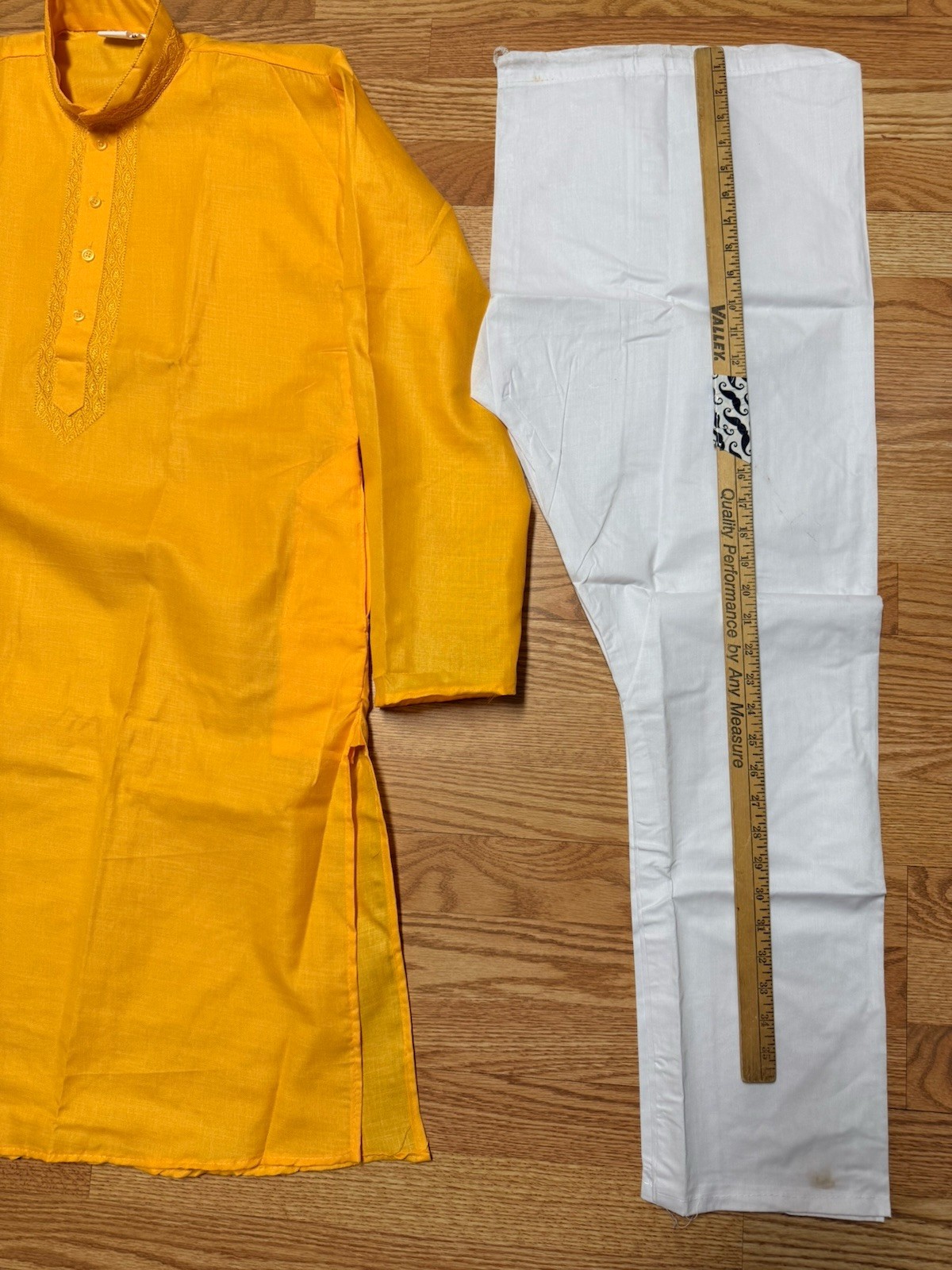 как выглядит Yellow cotton embr Haldi NWT Mens Kurta PAJAMA SET SZ 44 L/XL India-USA seller фото