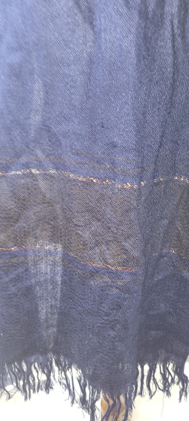 Unbranded Womens Dark Navy Gold Thread Accent Fringed Soft Scarf Shawl 64x23