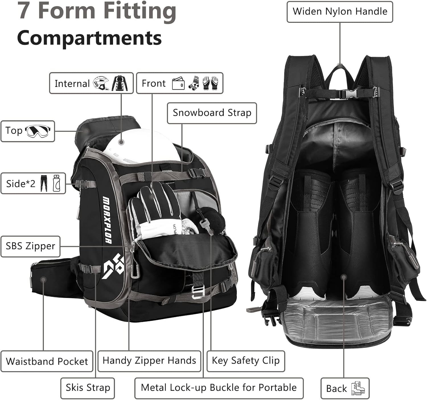 Ski Boot Bag 65L Padded Waterproof Ski Travel Backpack Gear Accessories Black