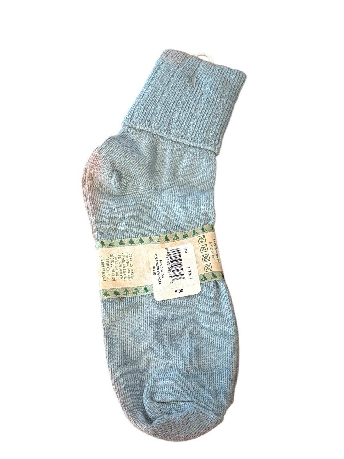 VTG 80's COTTON NYLON CABLE KNIT SLOUCH/CUFF DOWN ANKLET SOCKS 9-11 Blue AS IS
