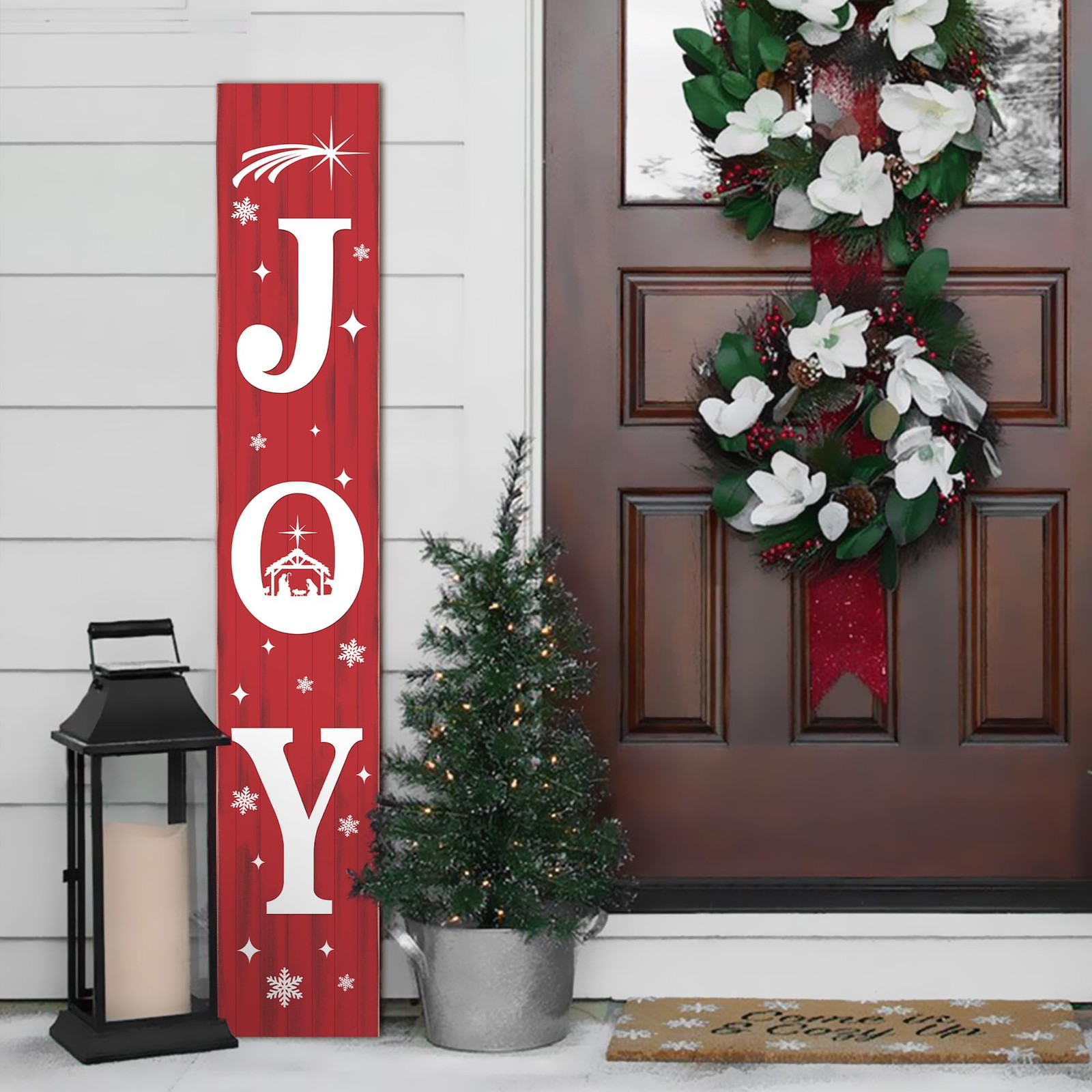 Christmas Porch Sign JOY 47 Winter Large Welcome 47.2 x 7.8, Red
