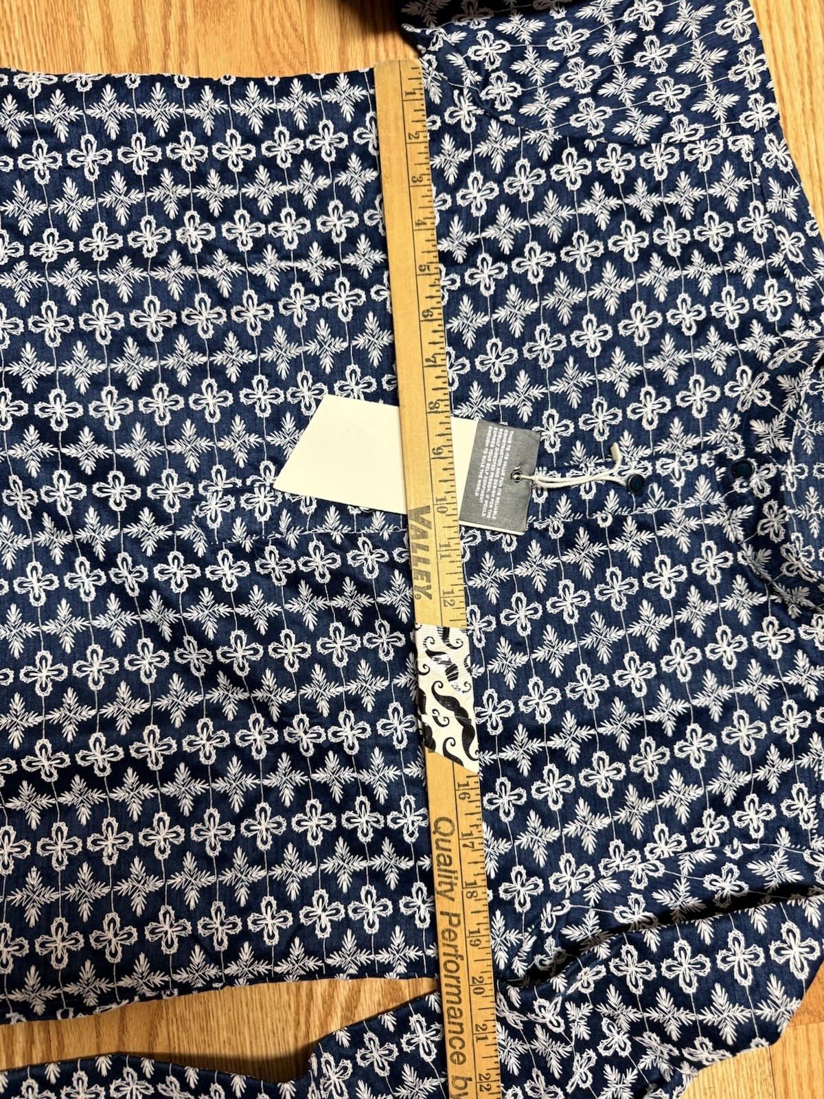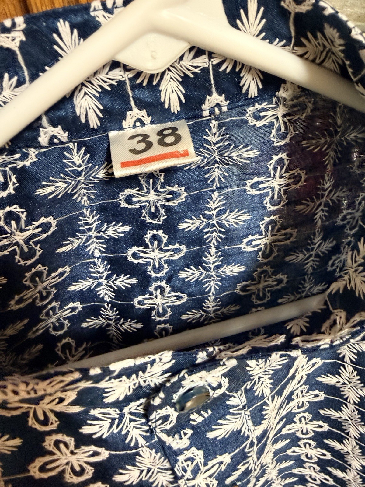как выглядит NWT Mens Kurta PAJAMA SET SZ 38 S/M Art silk NAVY WHITE EMBROIDERY India-USA фото