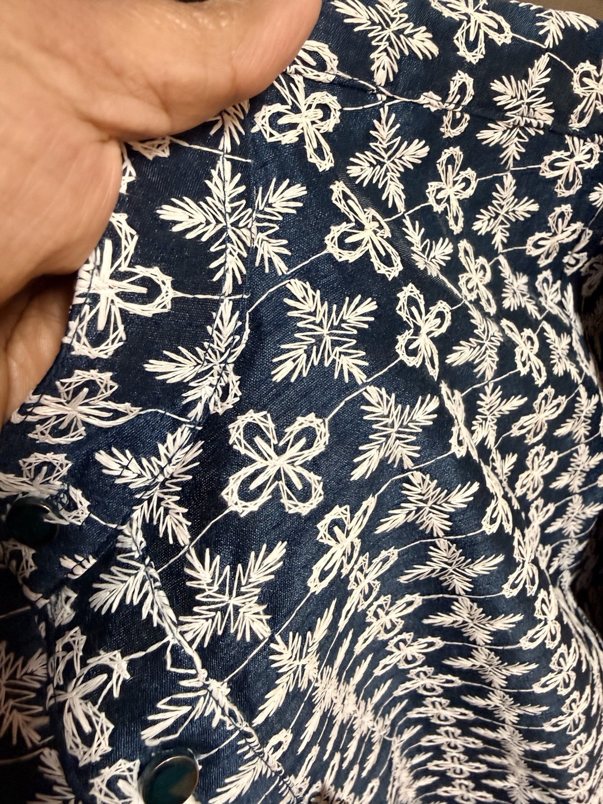 Цвет: NAVY BLUE/ ART silk with white thread embroidery floral