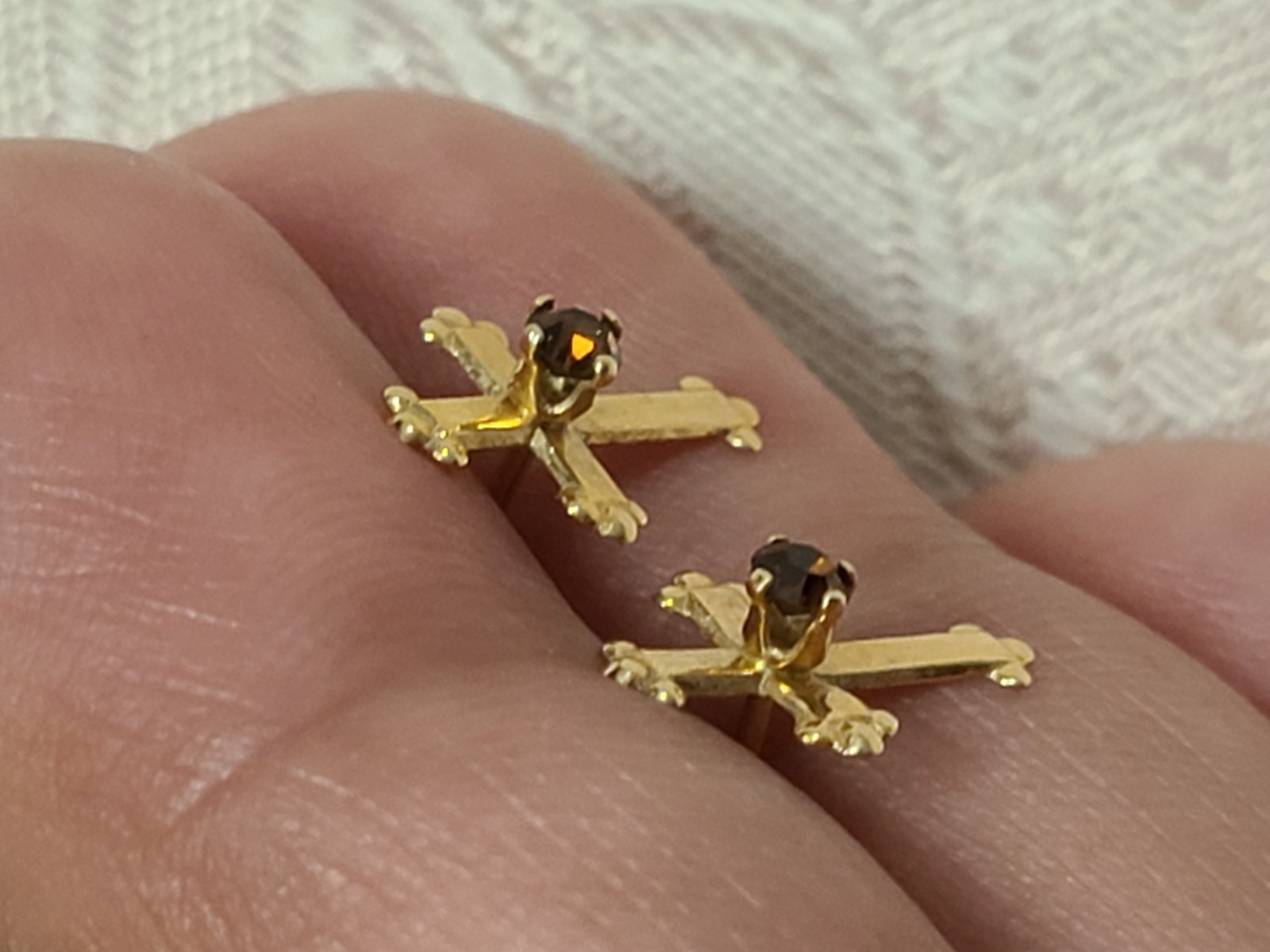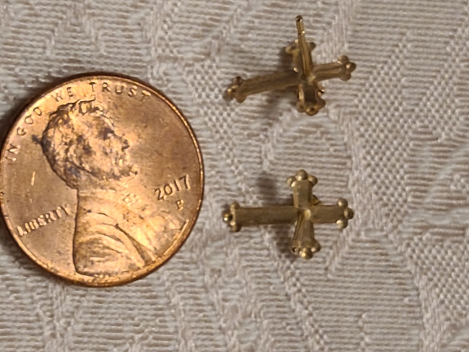 Tiny Mini 14K Yellow Gold Cross Earrings with Small stones MISSING BACKS