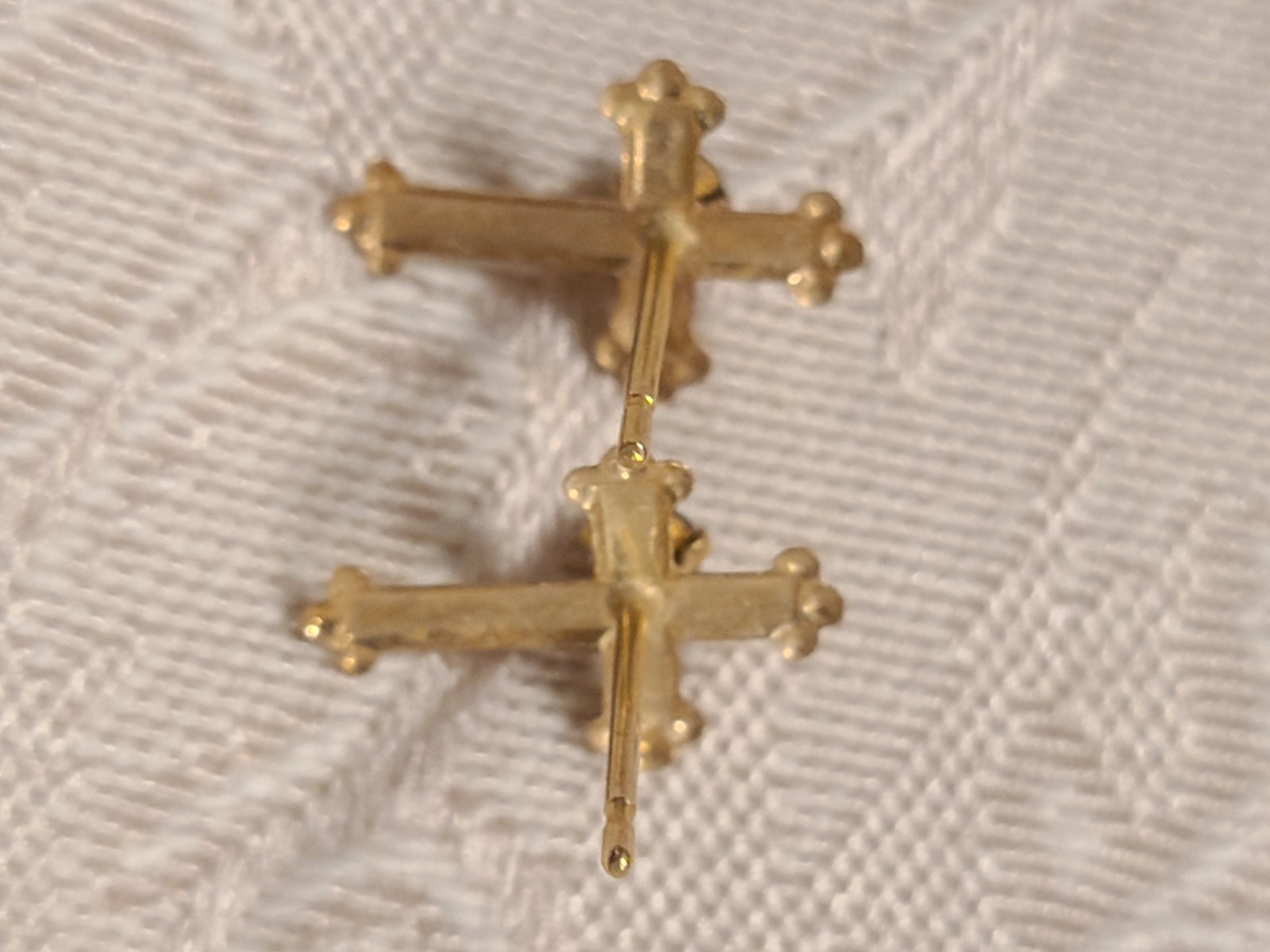 как выглядит Tiny Mini 14K Yellow Gold Cross Earrings with Small stones MISSING BACKS фото
