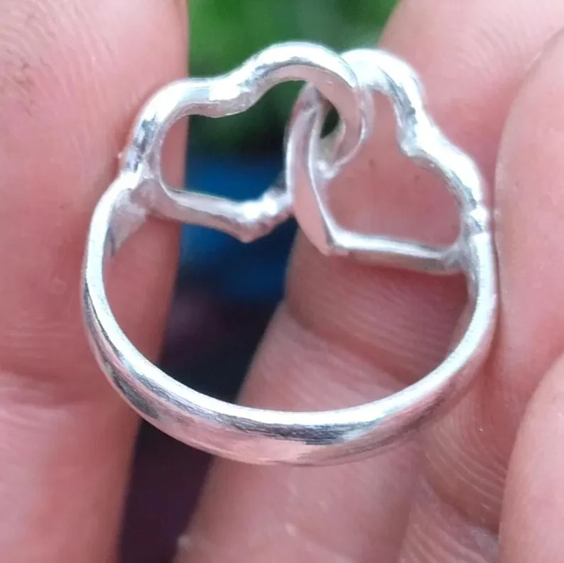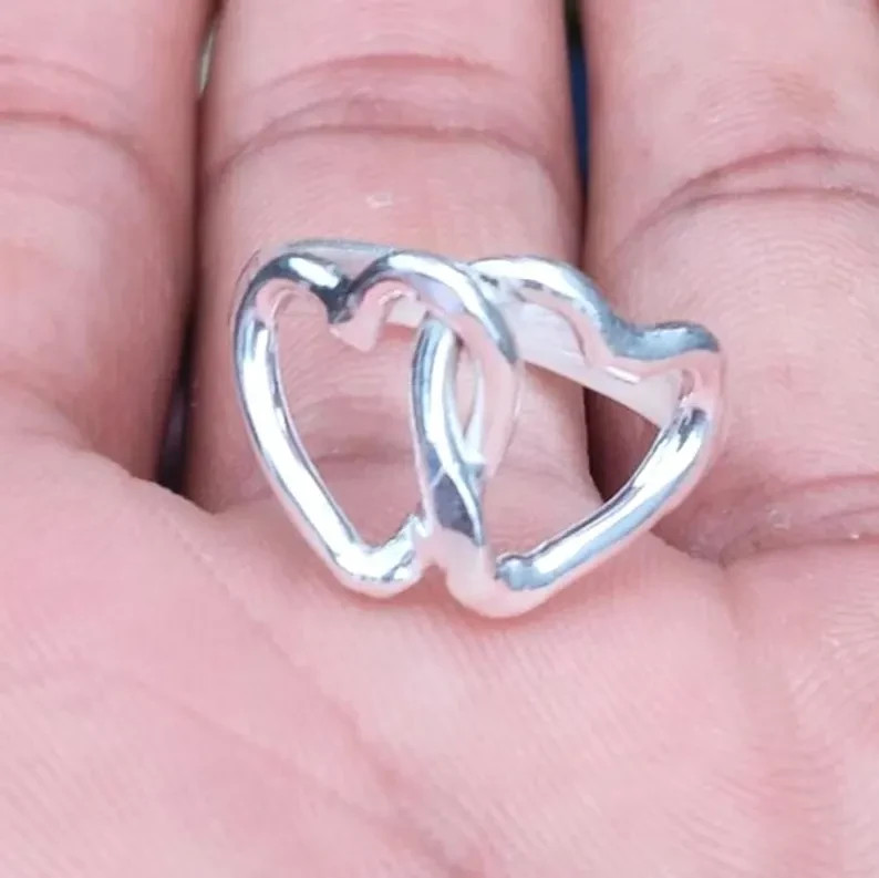 как выглядит Solid 925 Sterling Silver Double Heart Ring Handmade Statement All Size Ring R43 фото