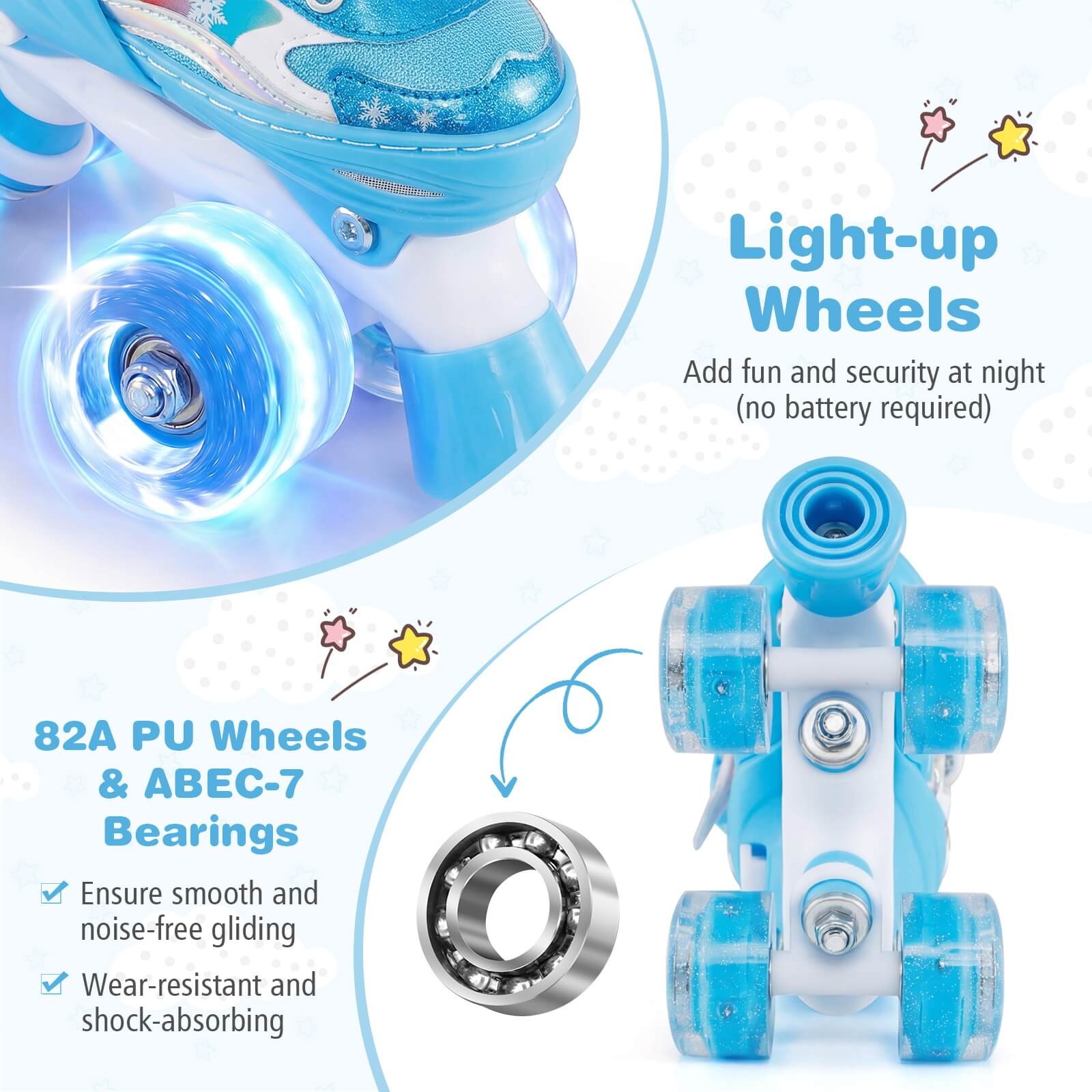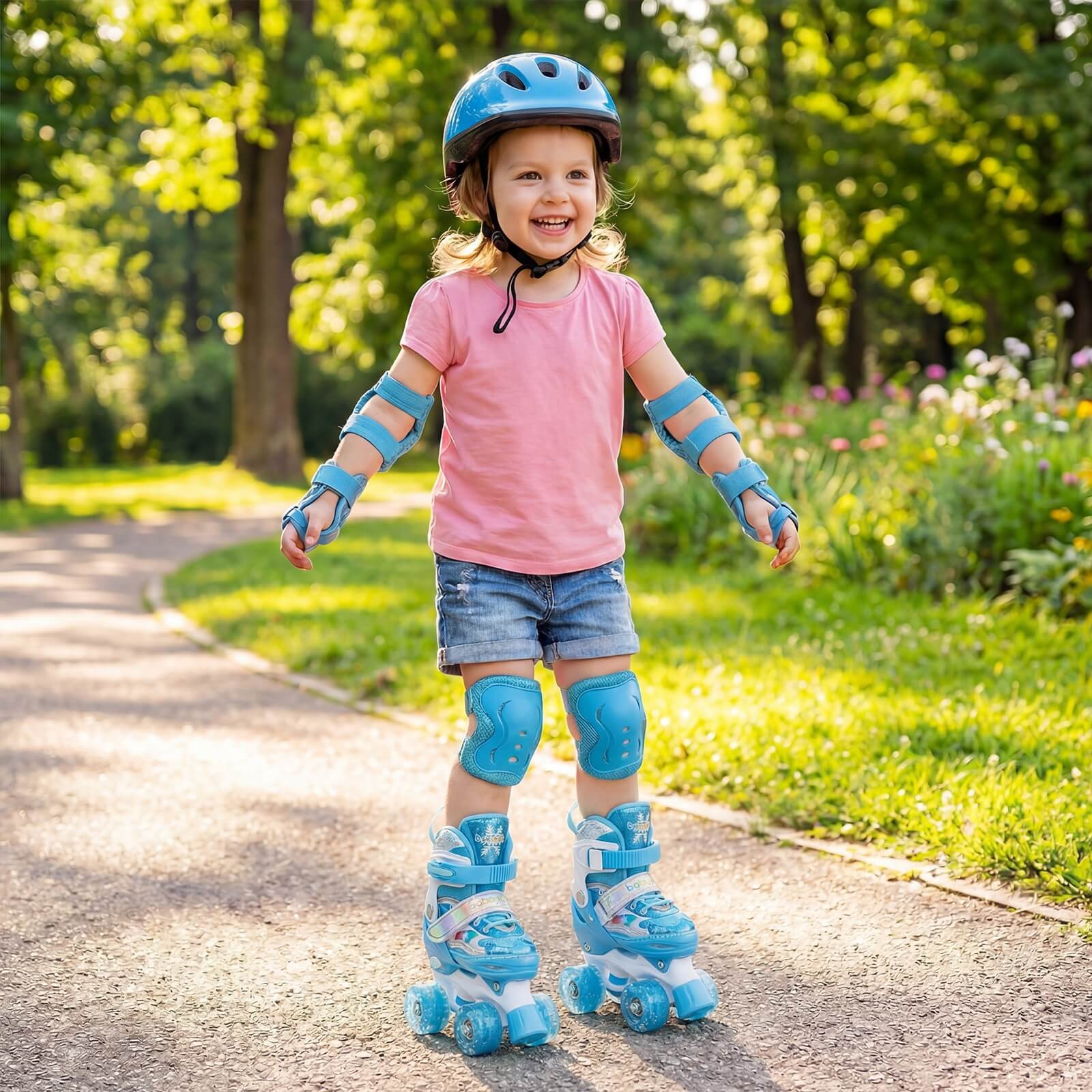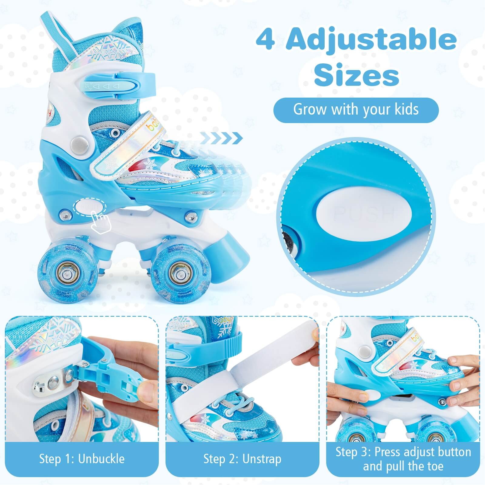 Kids Roller Skates 4 Sizes Adjustable Quad Skates w/Light-up Wheels for Children