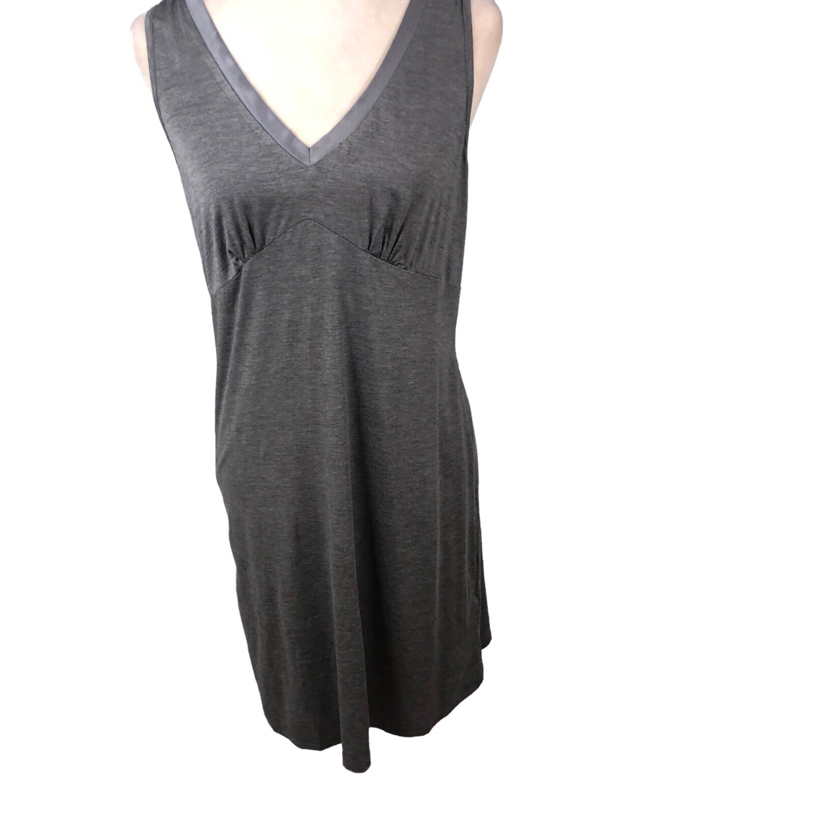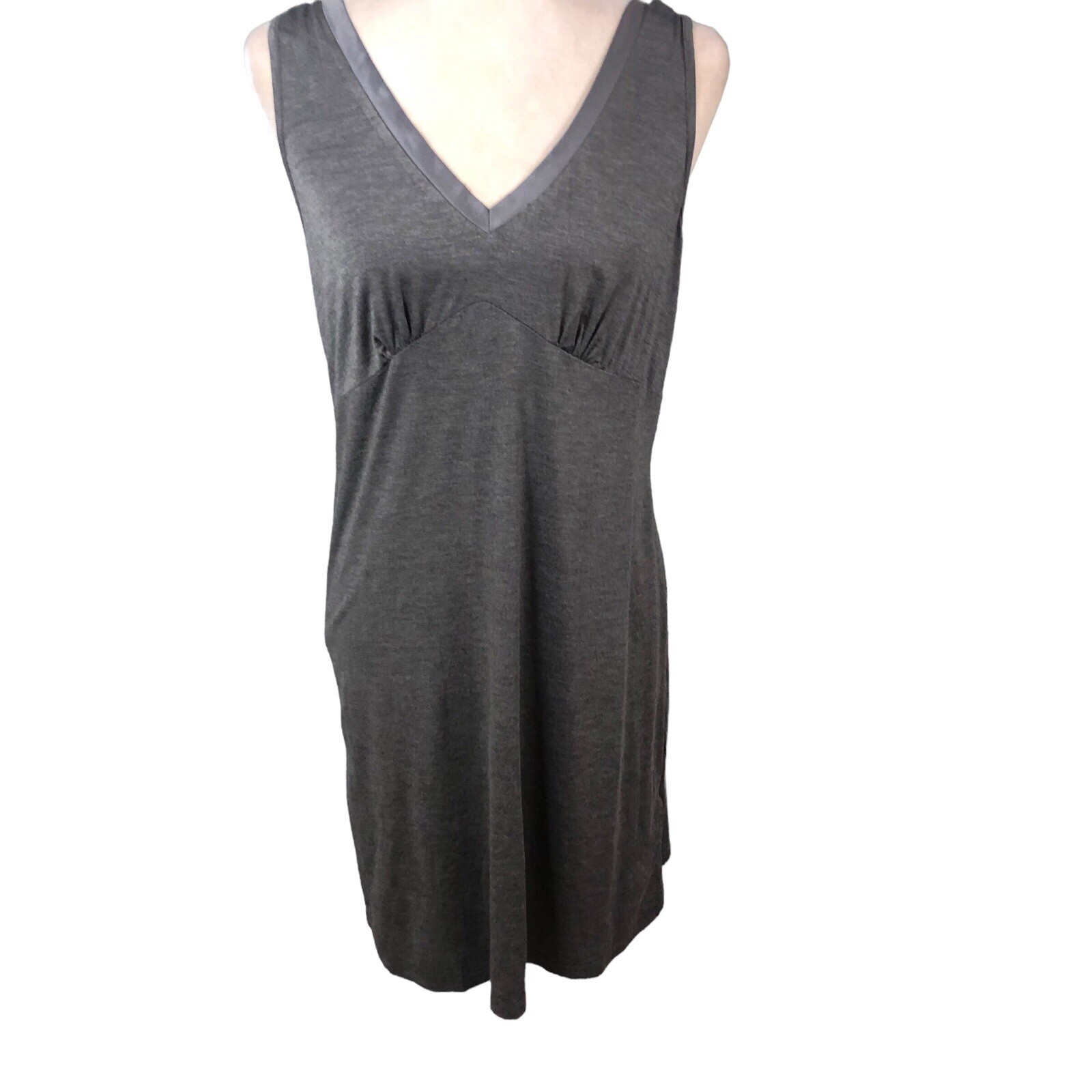 Ekouaer Nightgown Womens M Gray Knit Nightshirt V Neck Sleepshirt Minimalist