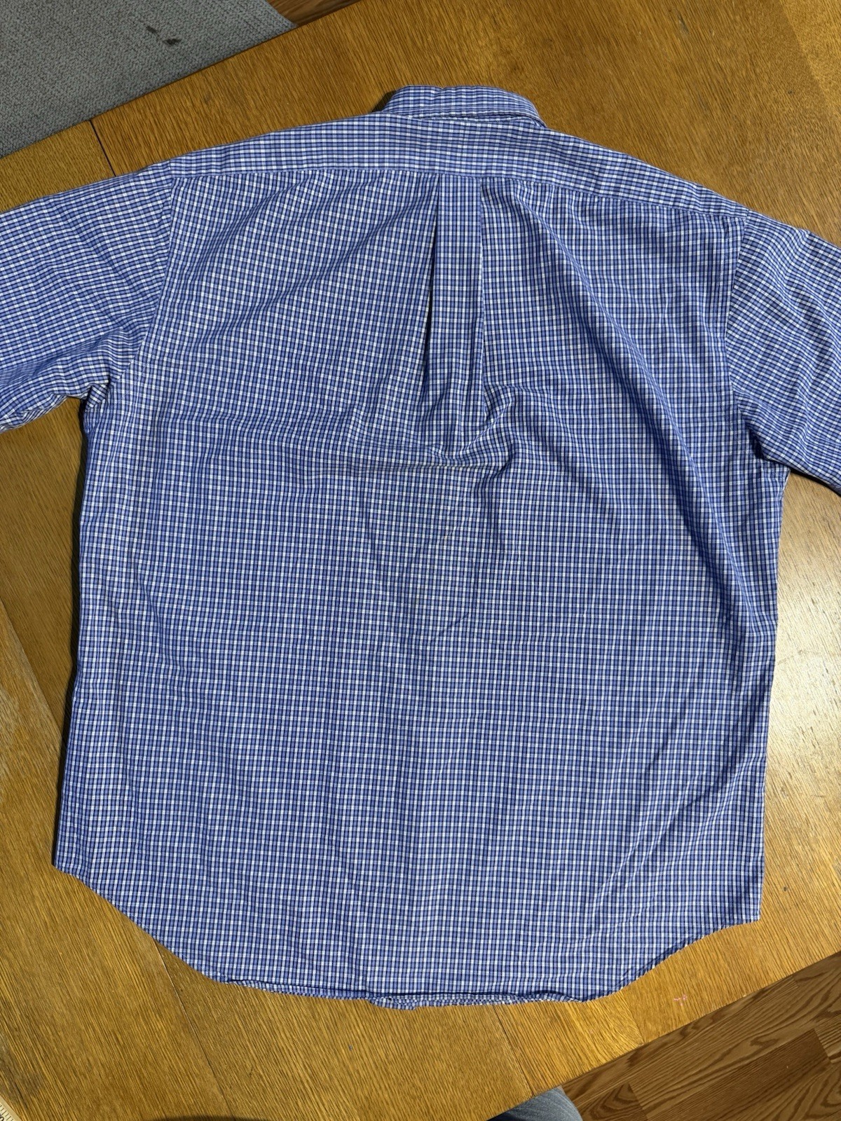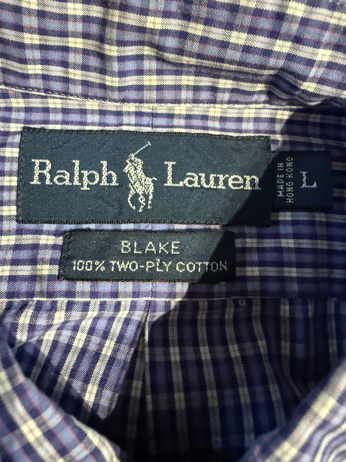 VTG Polo Ralph Lauren Shirt Mens L Blue White Gingham Check Oxford S/S Blue Pony