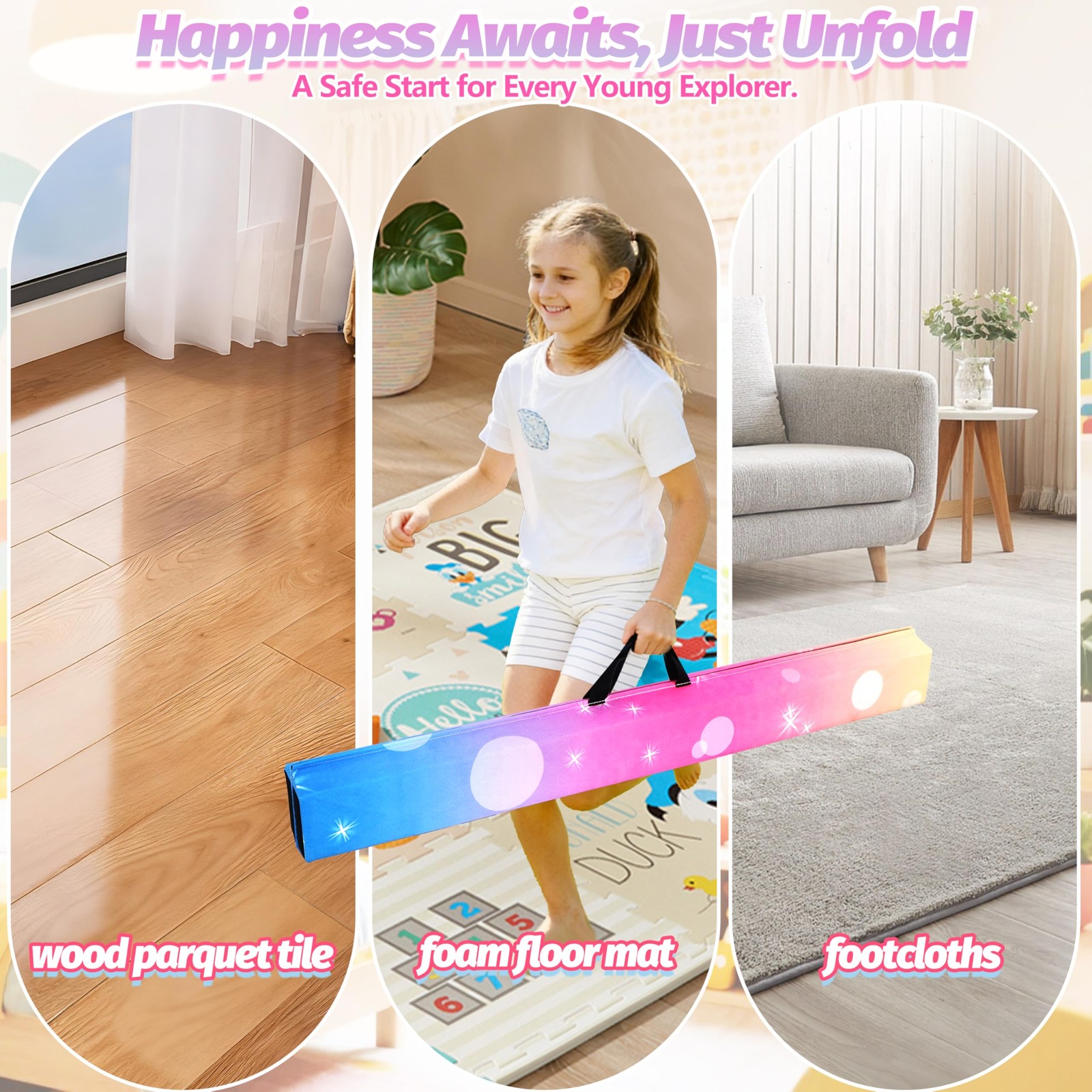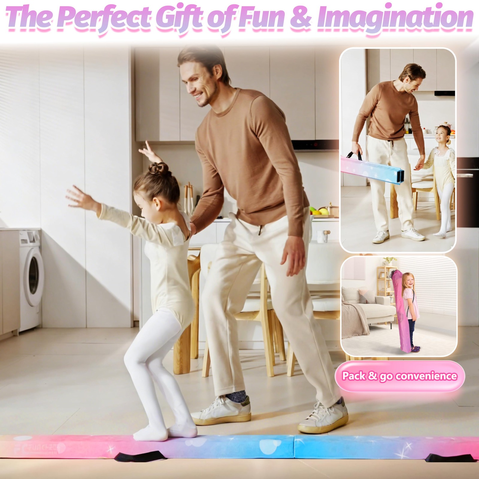 как выглядит 6FT/9FT Folding Balance Beam for Kids- Gymnastics Foam Floor Beam,Anti-Slip B... фото
