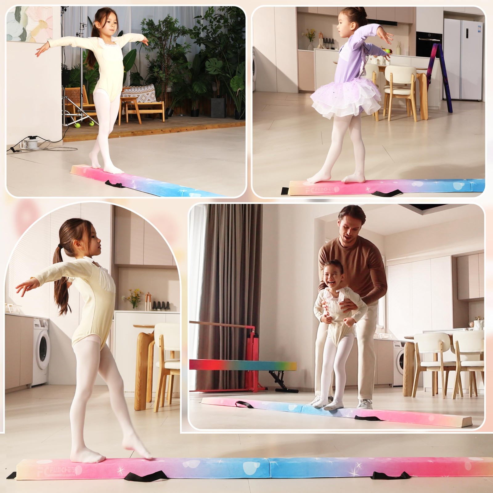 6FT/9FT Folding Balance Beam for Kids- Gymnastics Foam Floor Beam,Anti-Slip B...