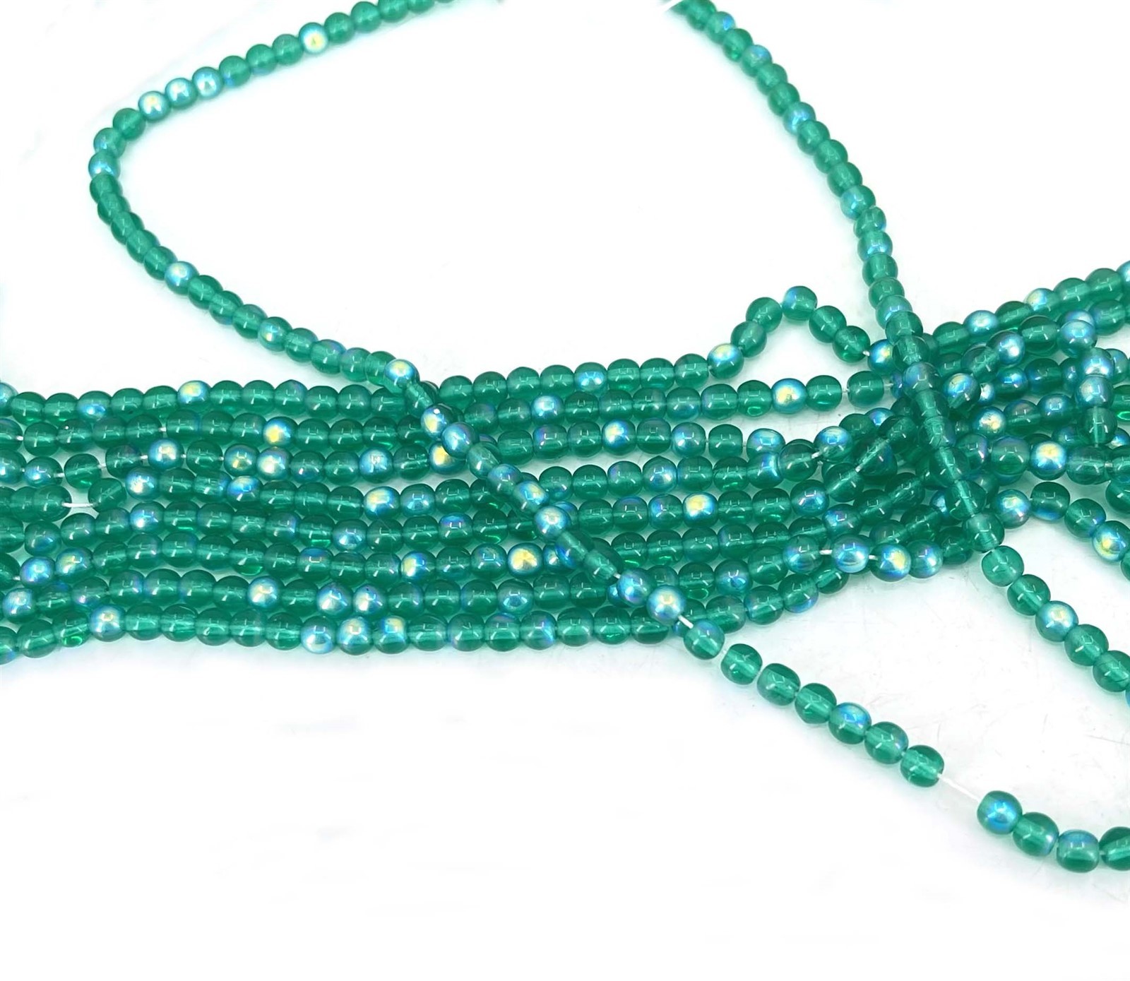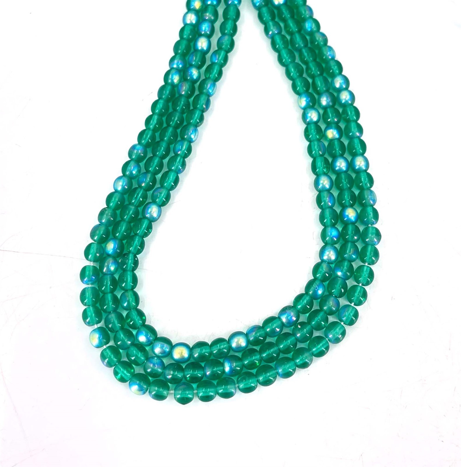 50 Czech Glass Round Beads - AB moonstone: Emerald 4mm