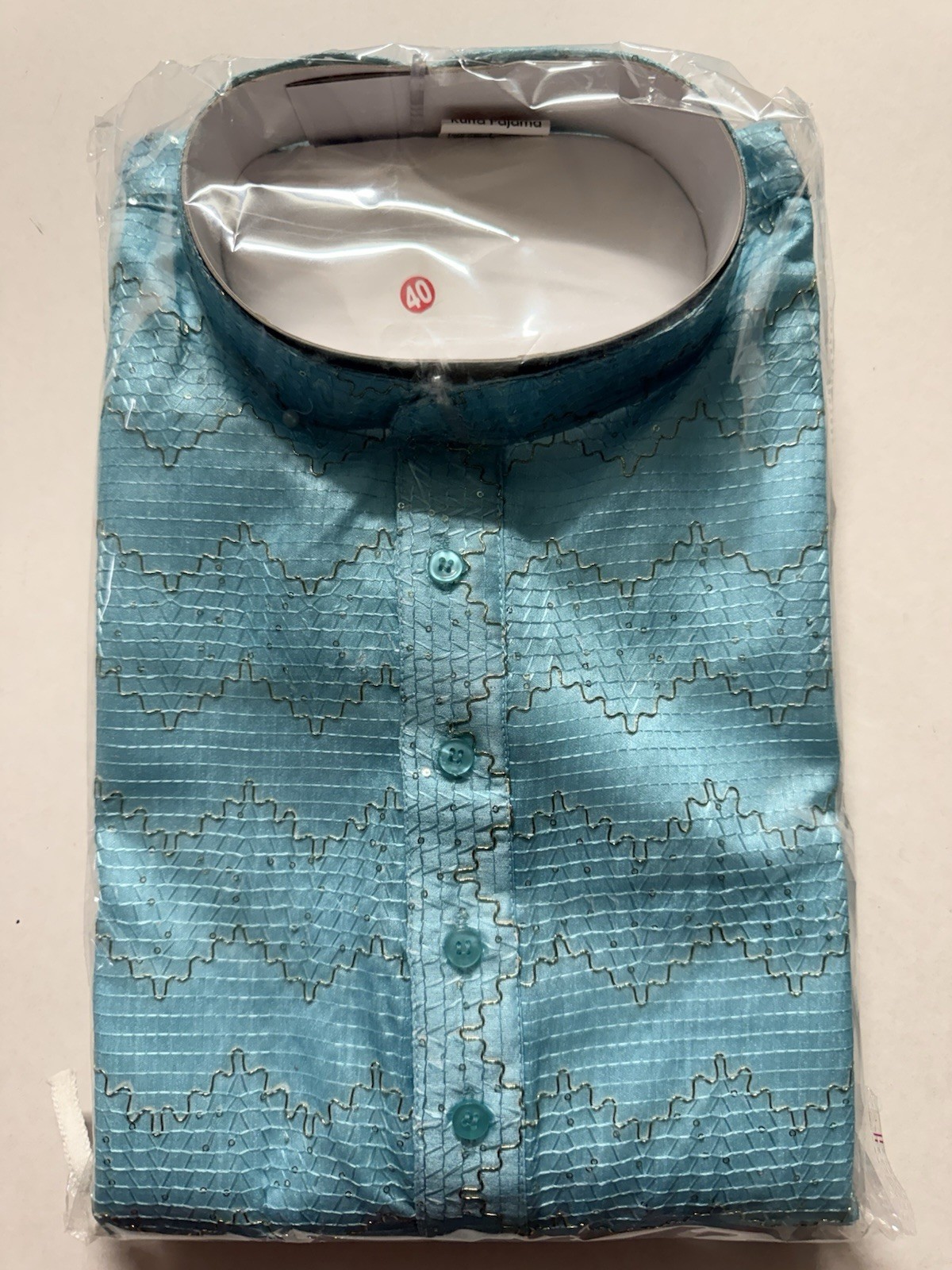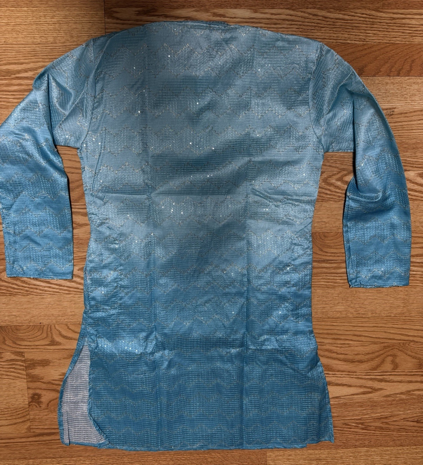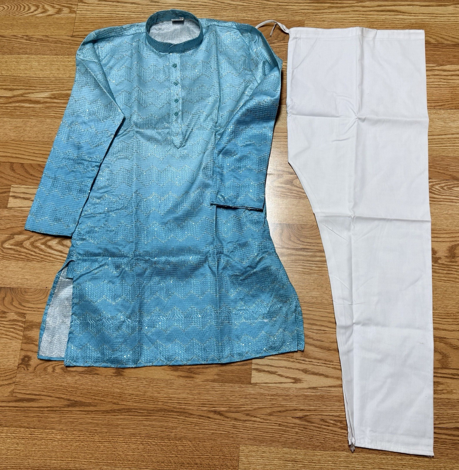 как выглядит NWT Mens Kurta PAJAMA SET SZ 40 M/L SKy BLUE OMBRE GOLDEN India-USA seller фото