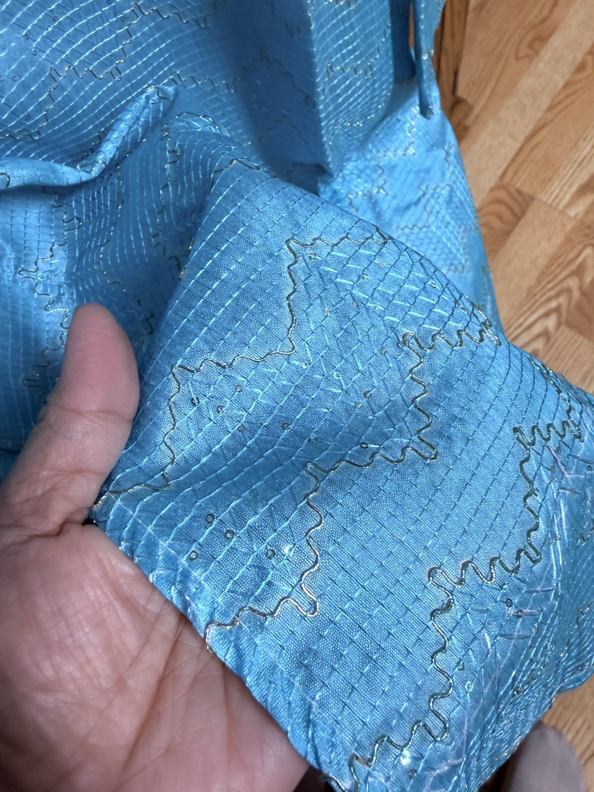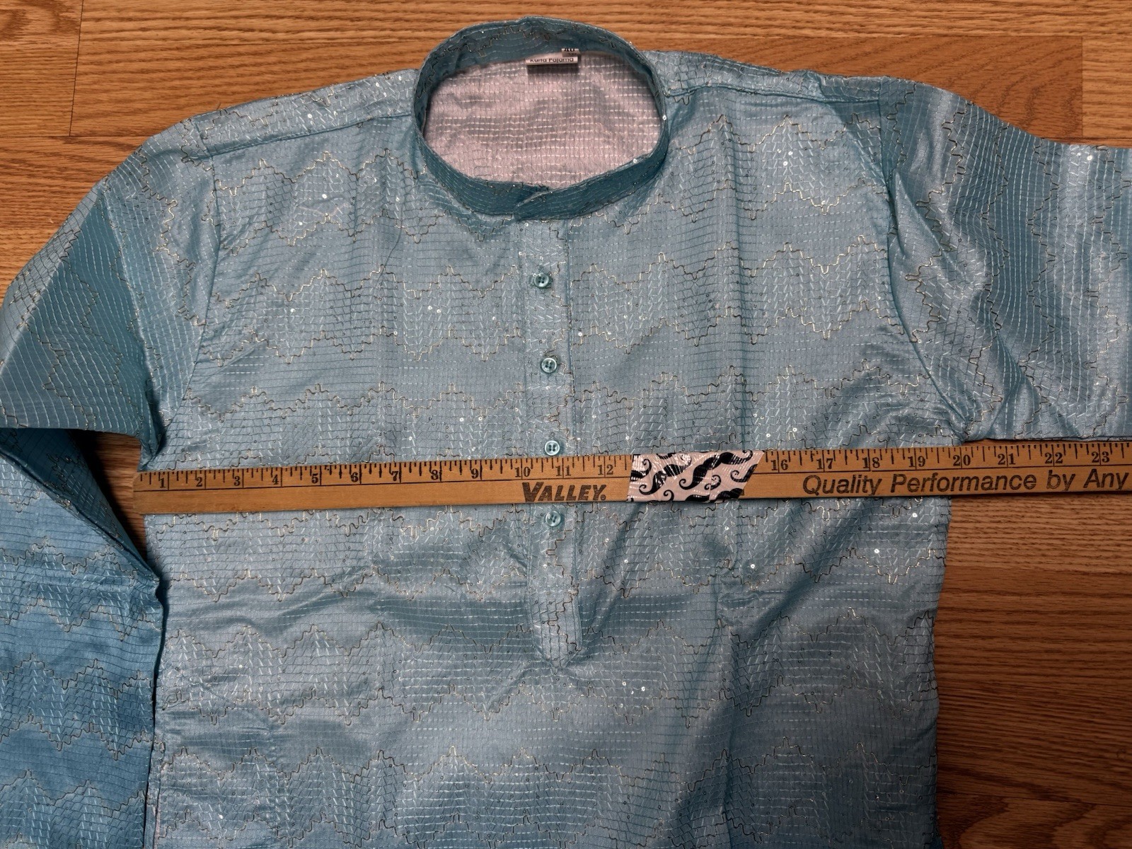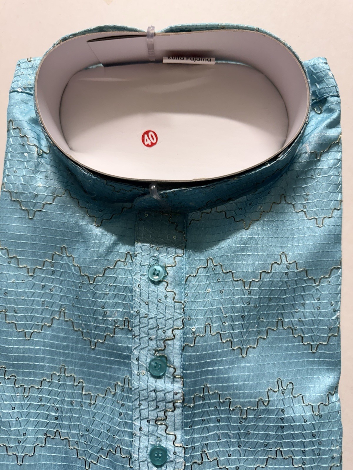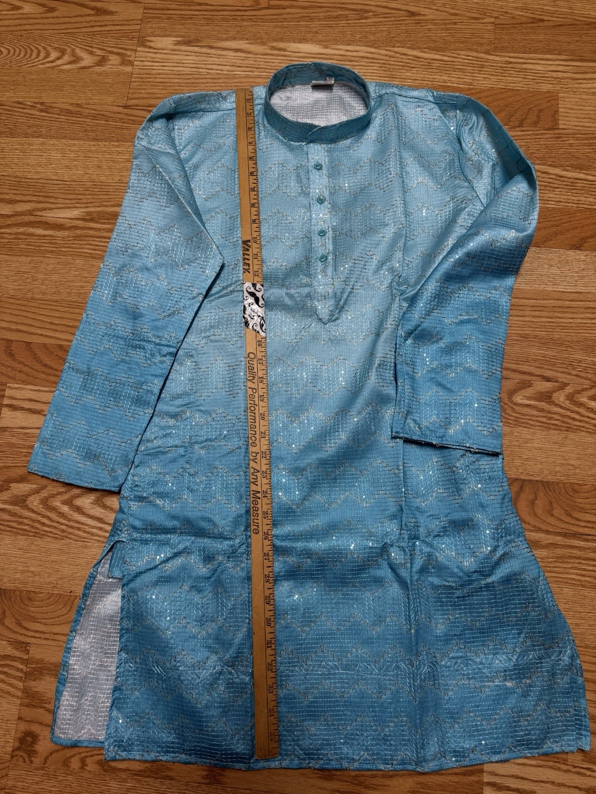 как выглядит NWT Mens Kurta PAJAMA SET SZ 40 M/L SKy BLUE OMBRE GOLDEN India-USA seller фото