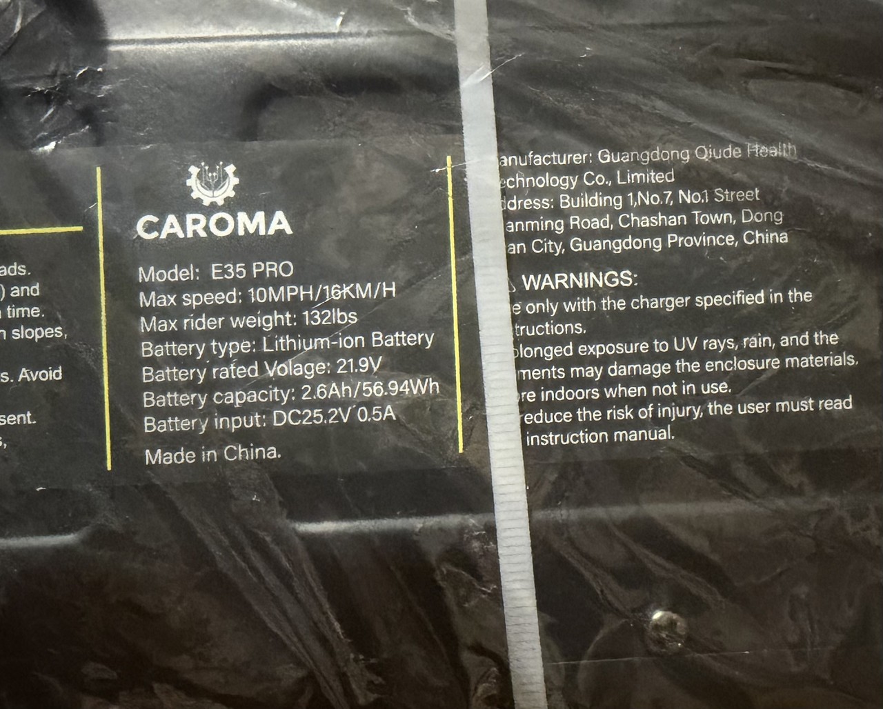 CAROMA E35 PRO KIDS ELECTRIC SCOOTER 6-14 ADJUSTABLE HEIGHT BLACK W/ LED LIGHTS