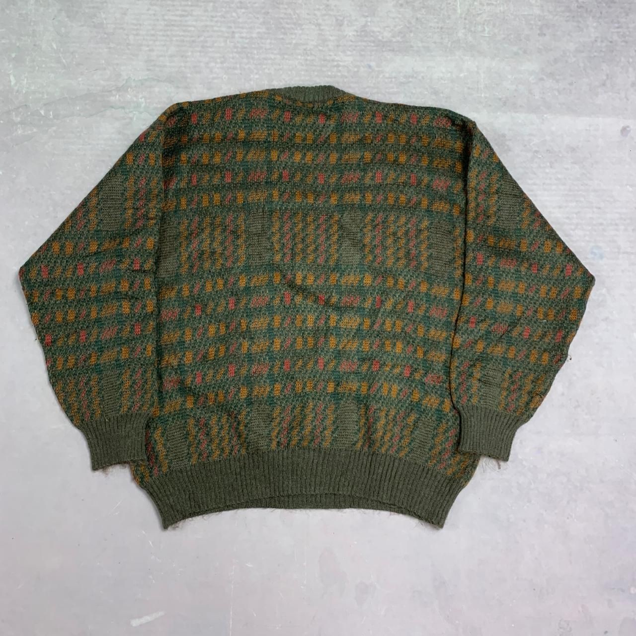 как выглядит Vintage Knitted Jumper Abstract Patterned Grandad Knit Sweater Men