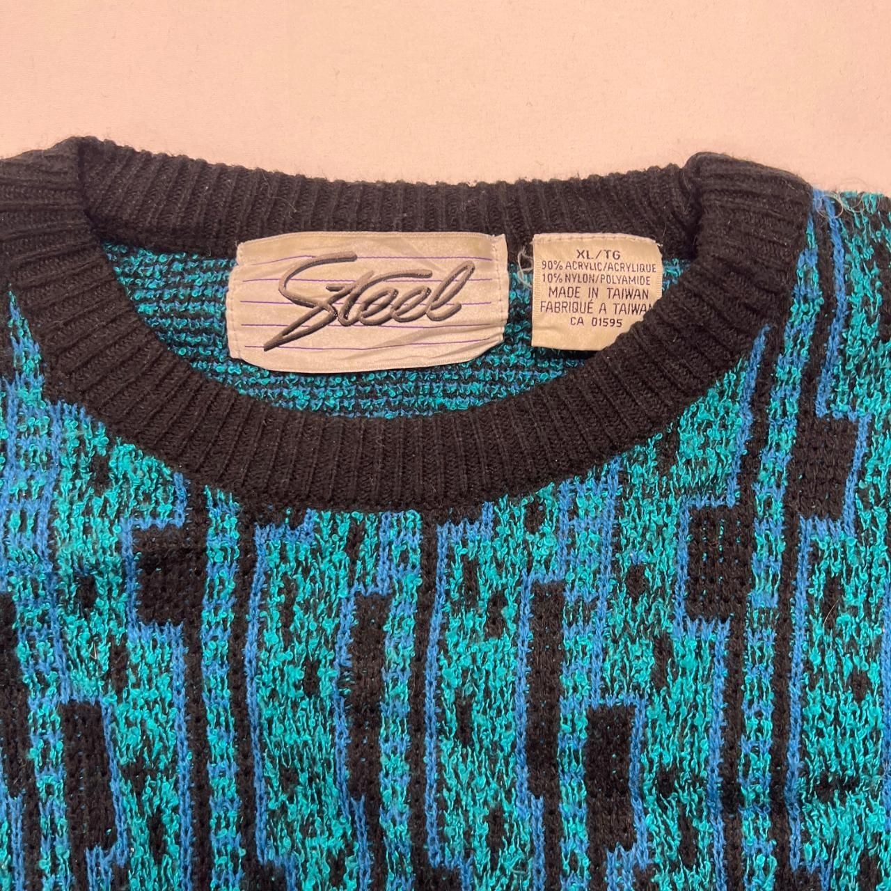 как выглядит Vintage Knitted Jumper Abstract Patterned Grandad Knit Sweater, Acrylic And фото