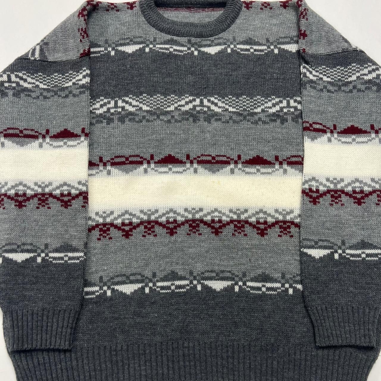 как выглядит Vintage Knitted Jumper Abstract Patterned Grandad Knit Sweater Men