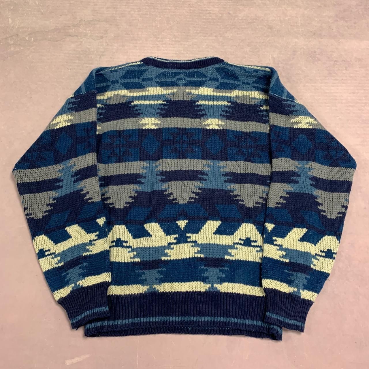как выглядит Vintage Knitted Jumper Abstract Patterned Grandad Knit Sweater, 100 Acrylic фото