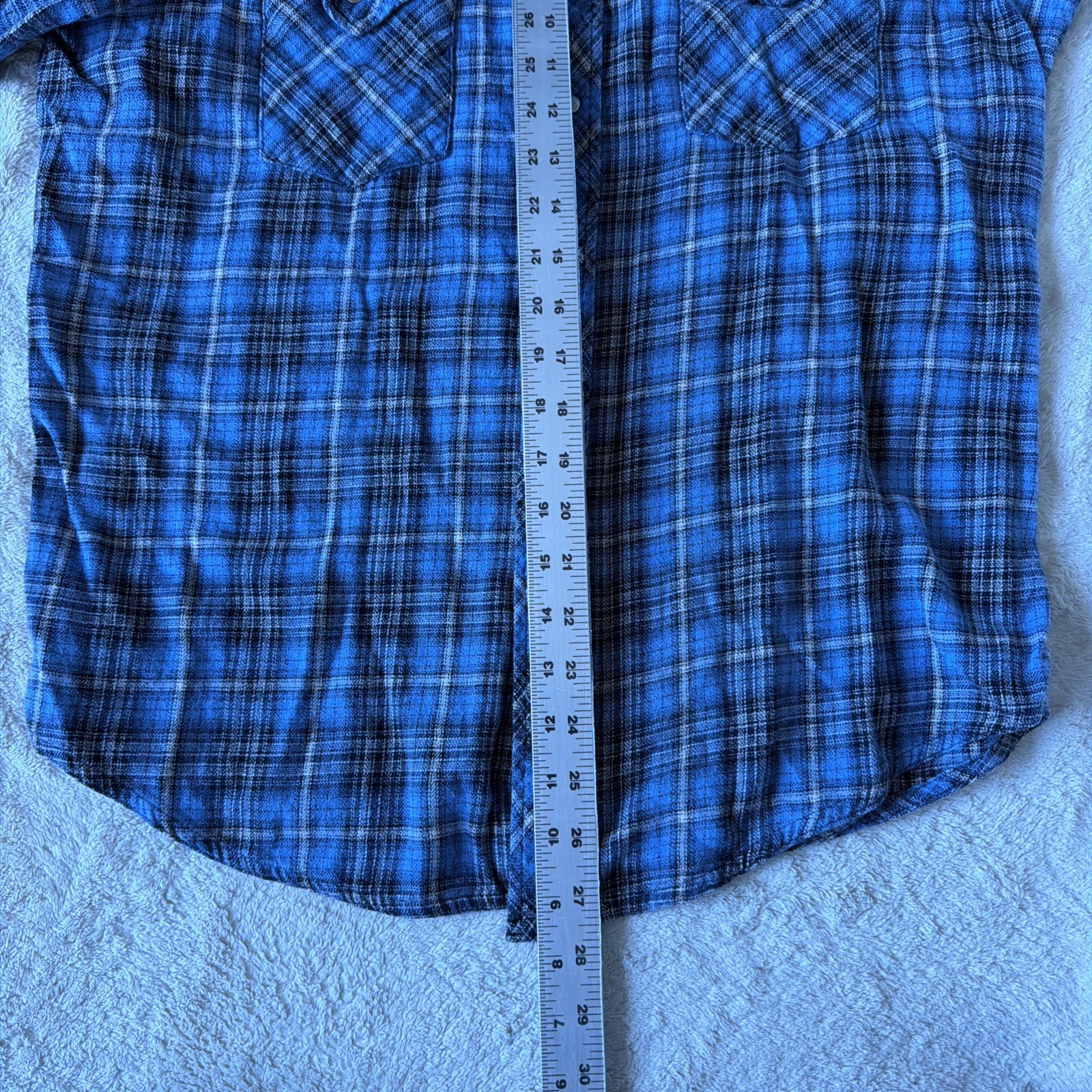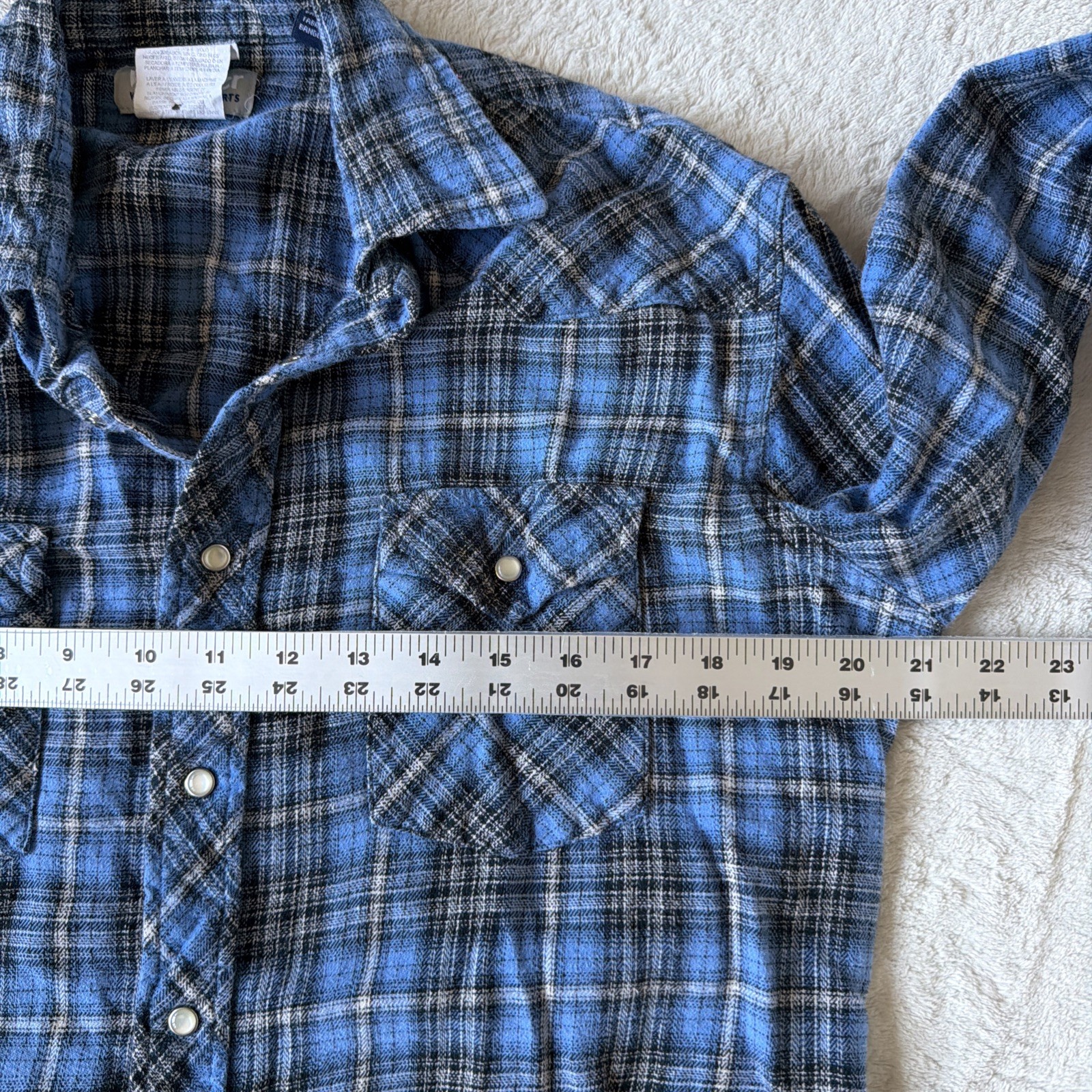 как выглядит Wrangler Wrancher Shirt Mens Large Western Pearl Snap Plaid Dress 100 Cotton фото