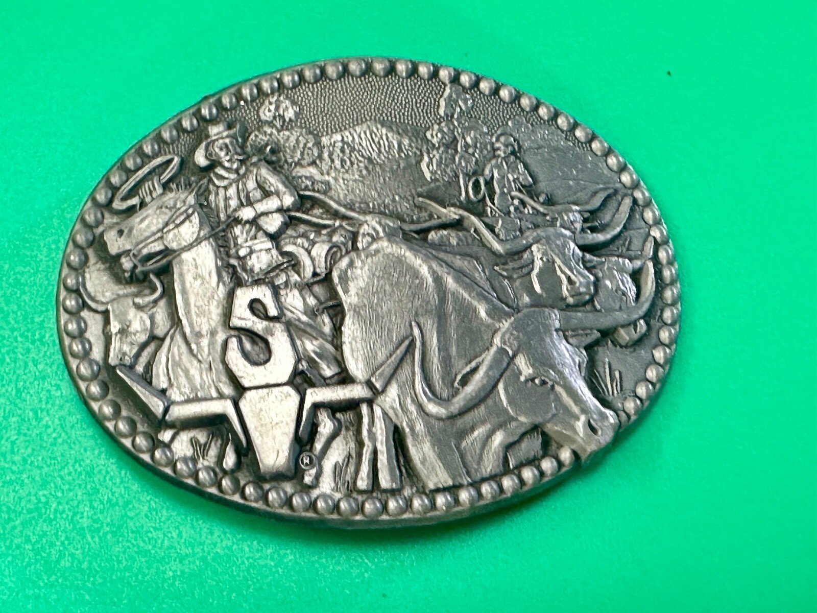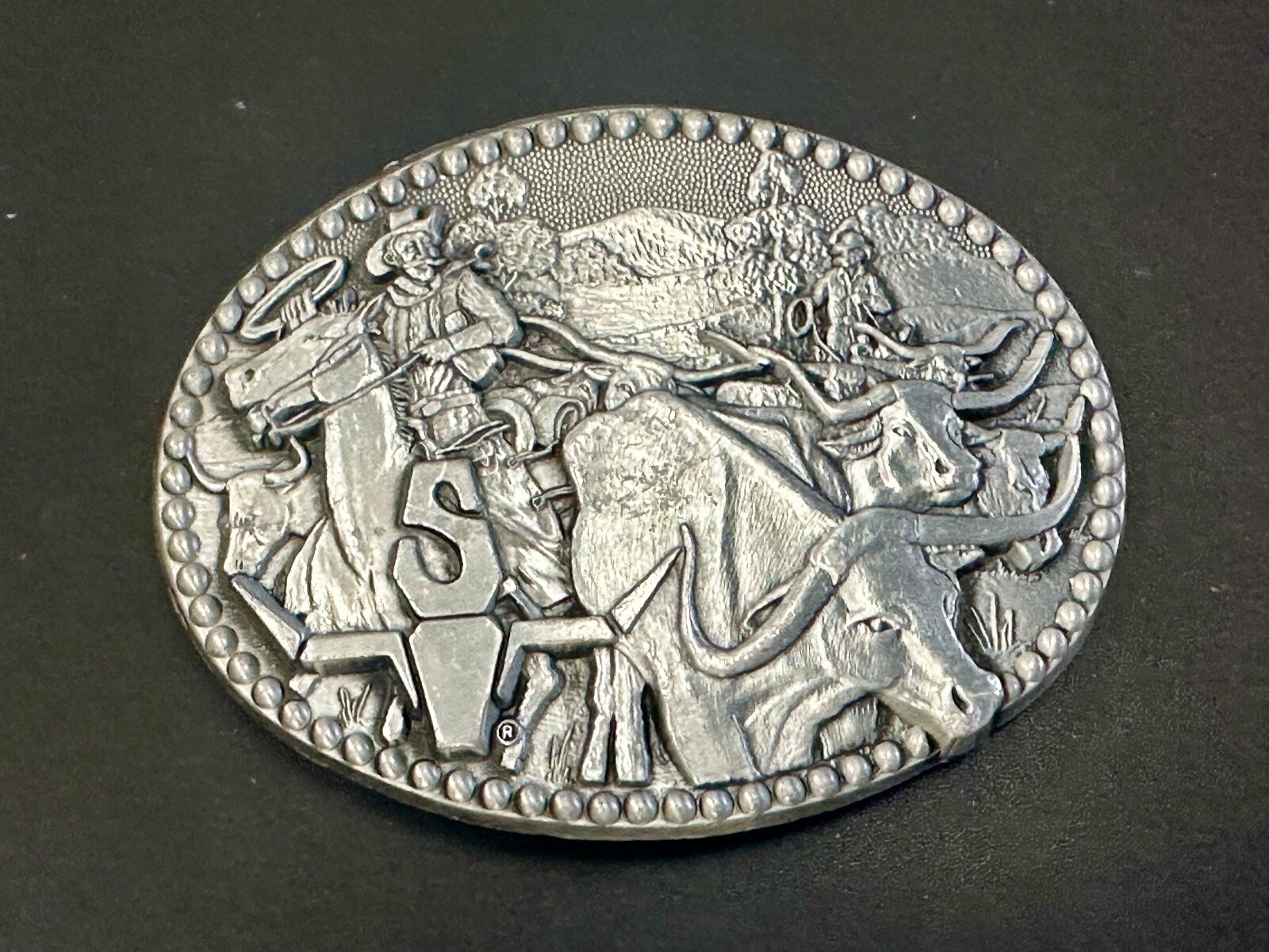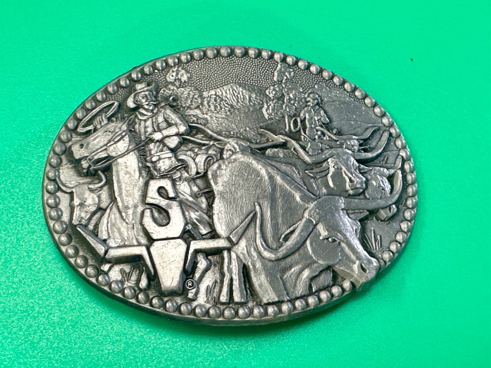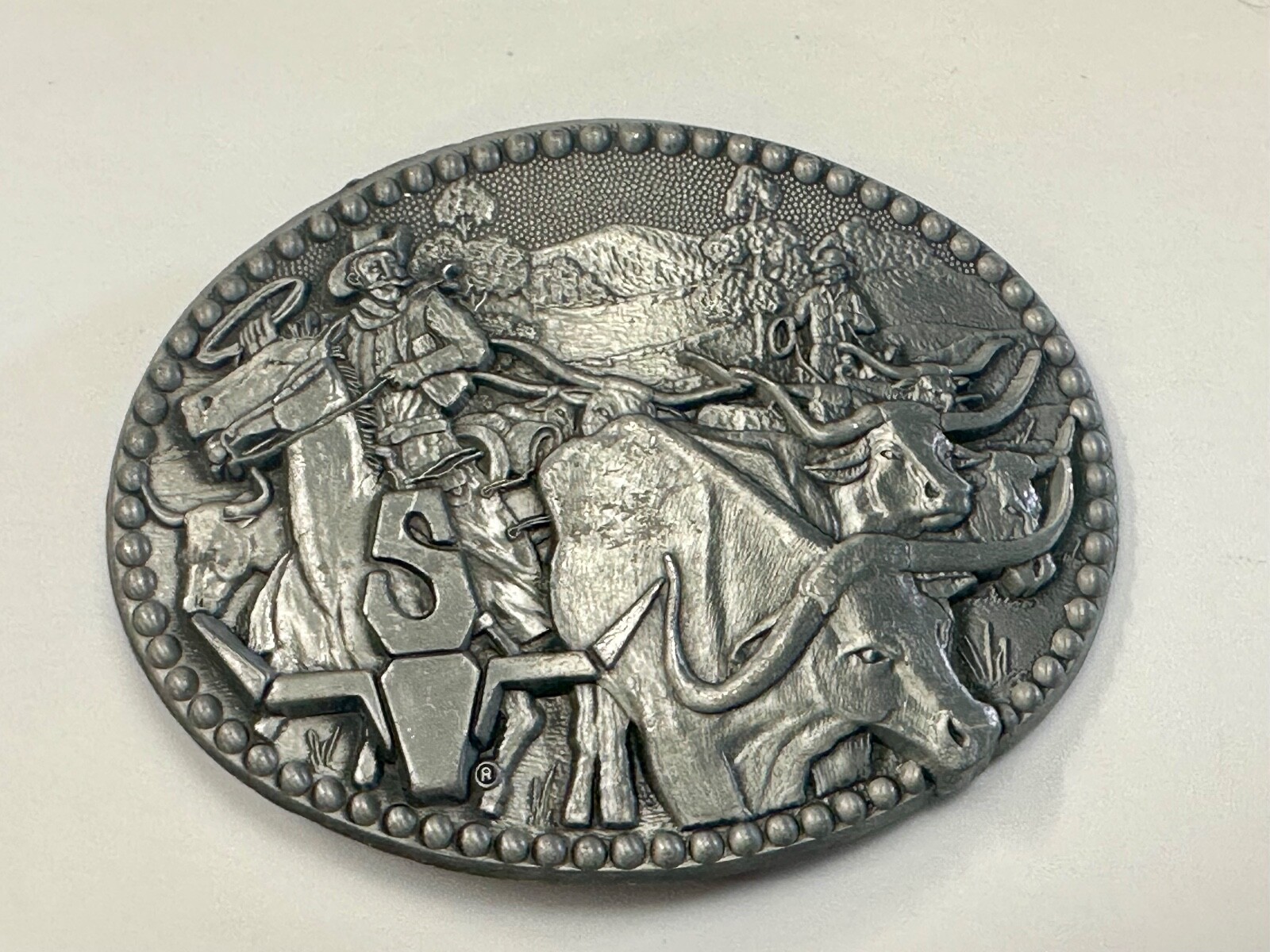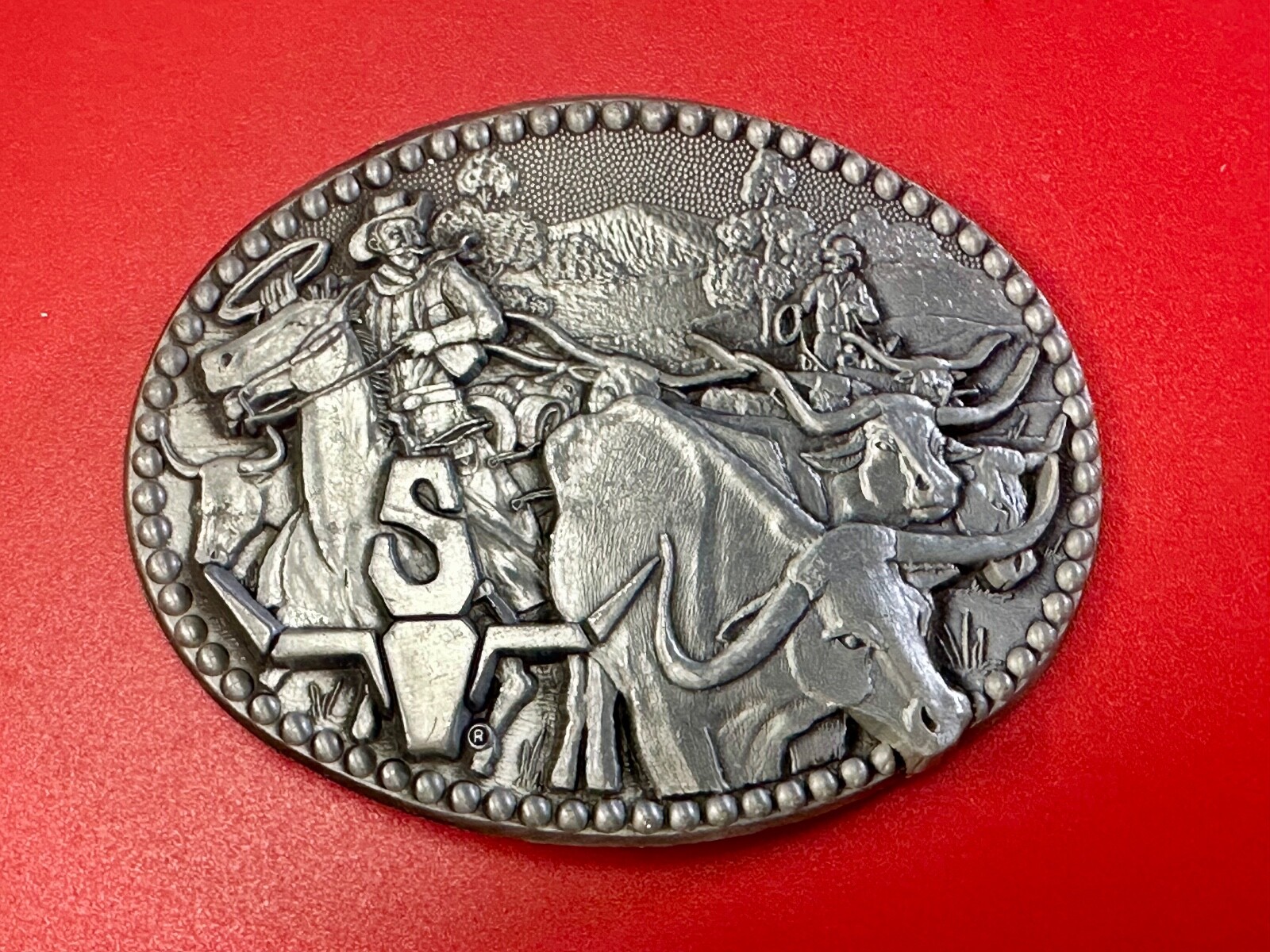 Zee Series Adm Cattle Drive Texas Longhorn Cowboys Western Belt Buckle