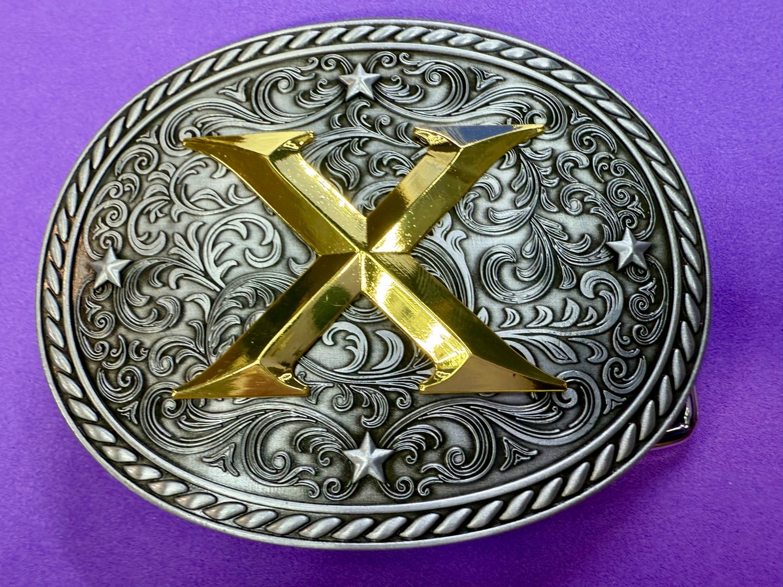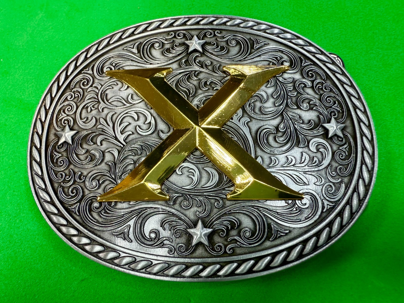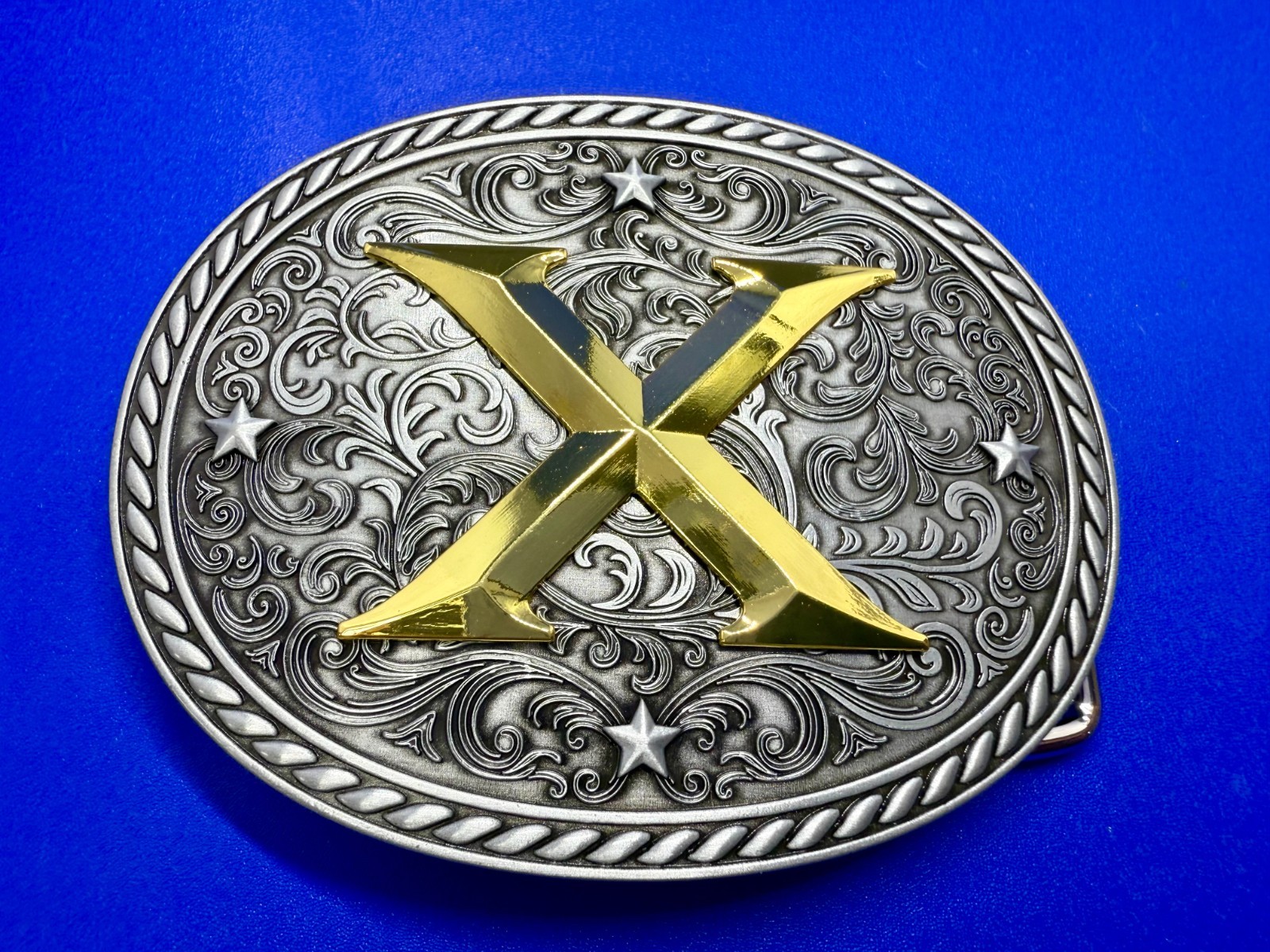 • Personalized Initial Letter A Western Gold Silver Color Raised New Belt Buckle