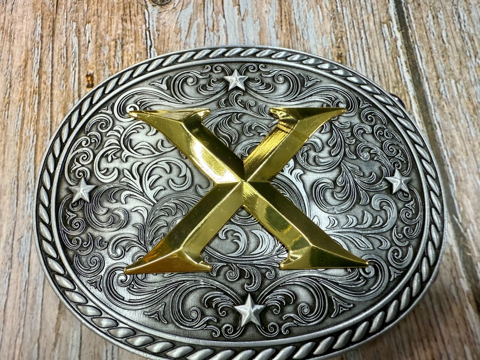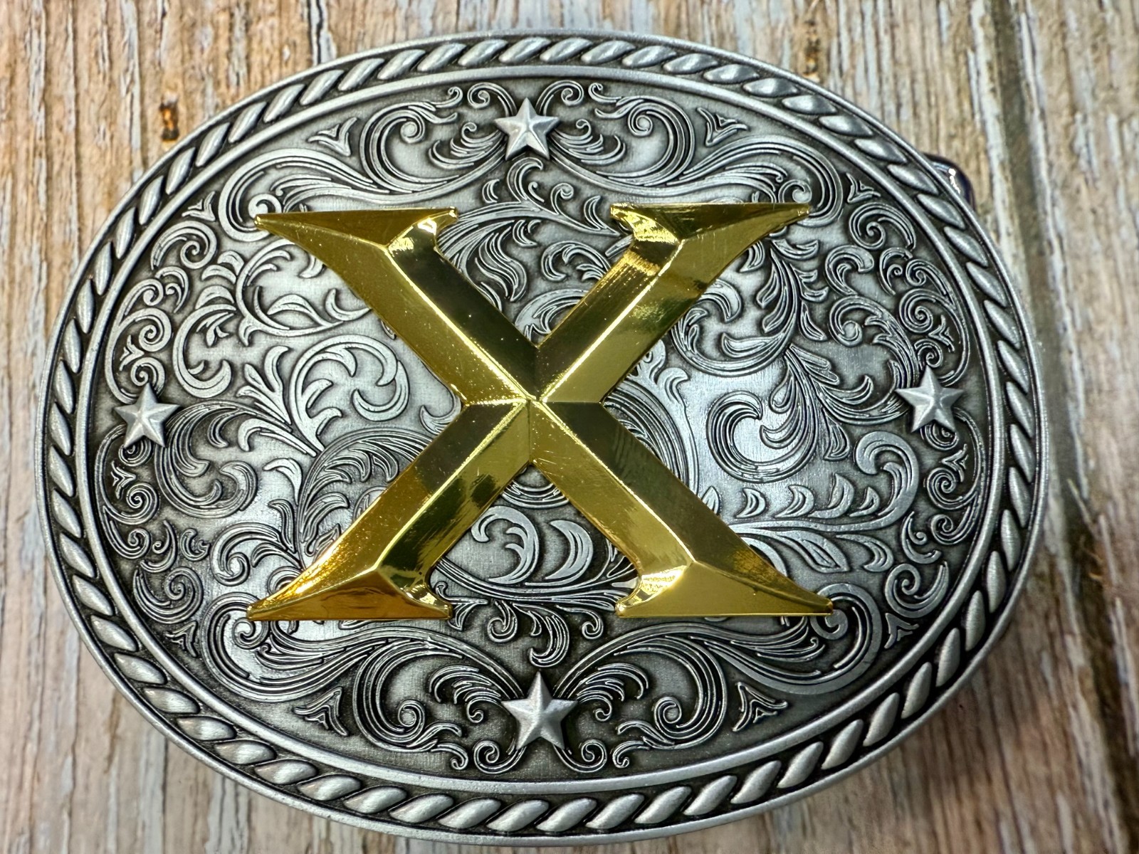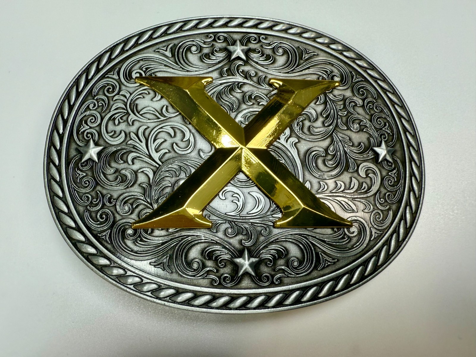 • Personalized Initial Letter A Western Gold Silver Color Raised New Belt Buckle