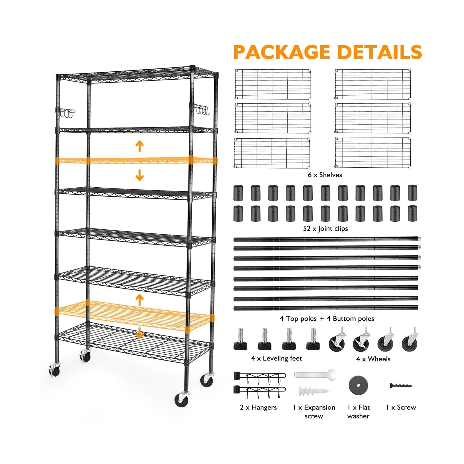6 Tier Storage Shelves with Wheels, 2100lbs Capacity Heavy Duty Shelving Unit...