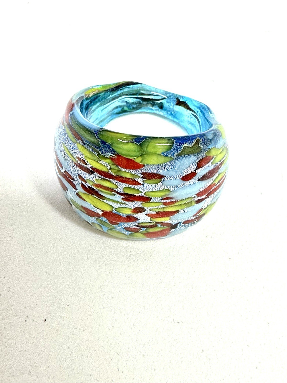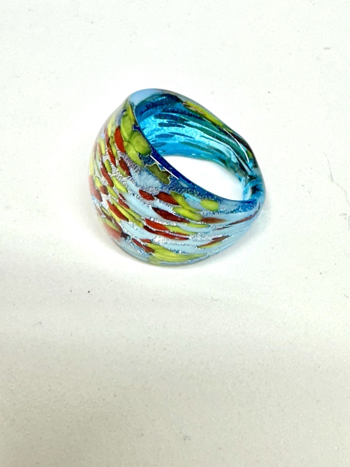 Murano Glass Ring Blue Yellow Red Size 7