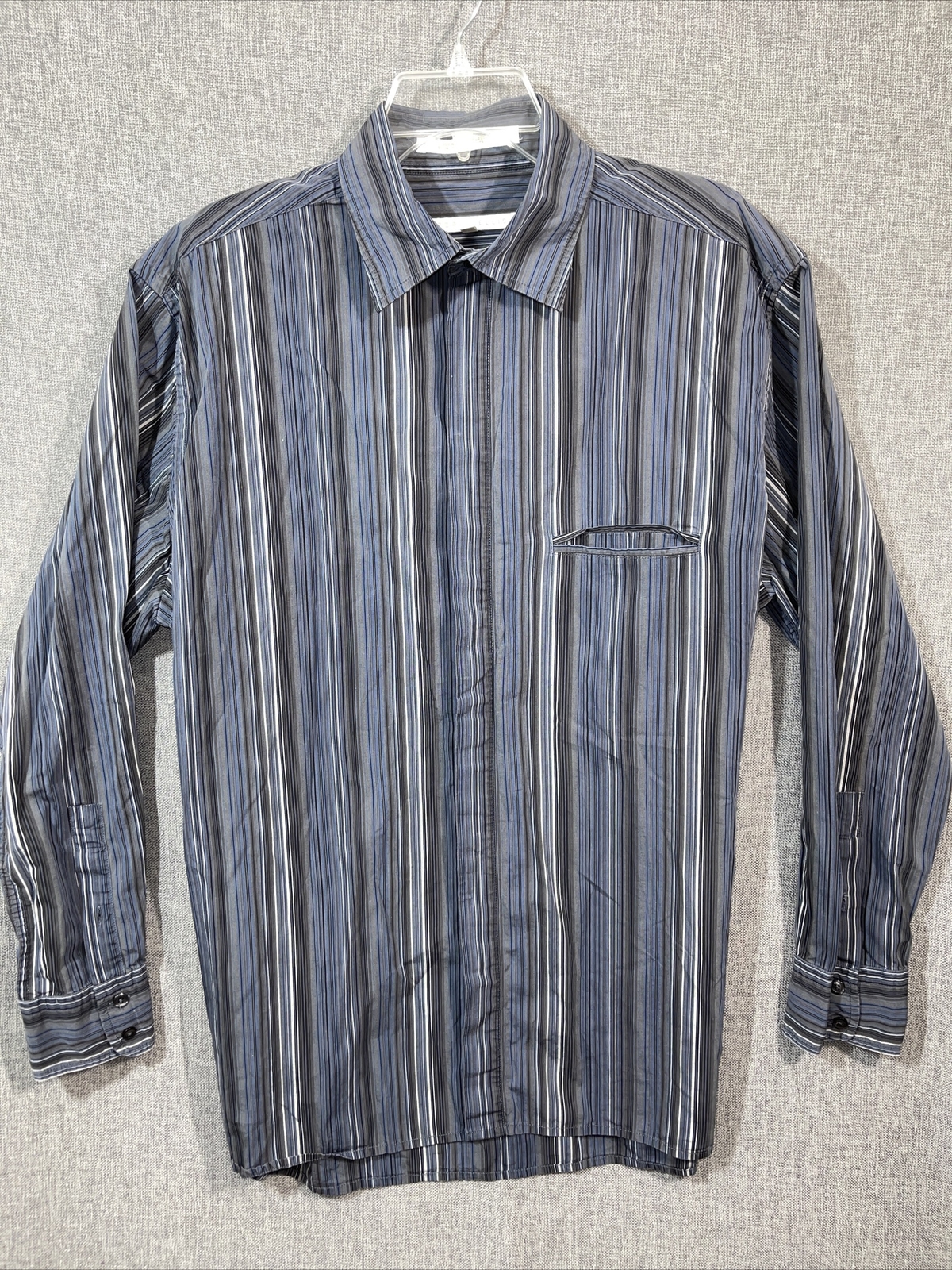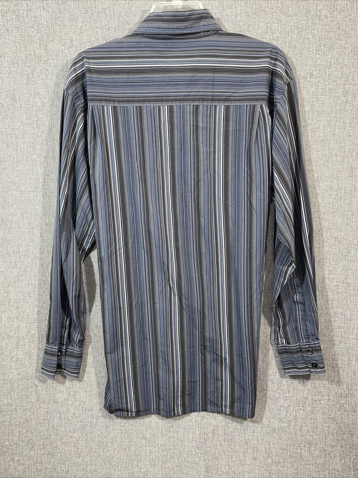 как выглядит Perry Ellis Mens L Long Sleeve Blue Stiped Button Down Cotton Shirt MS8 фото
