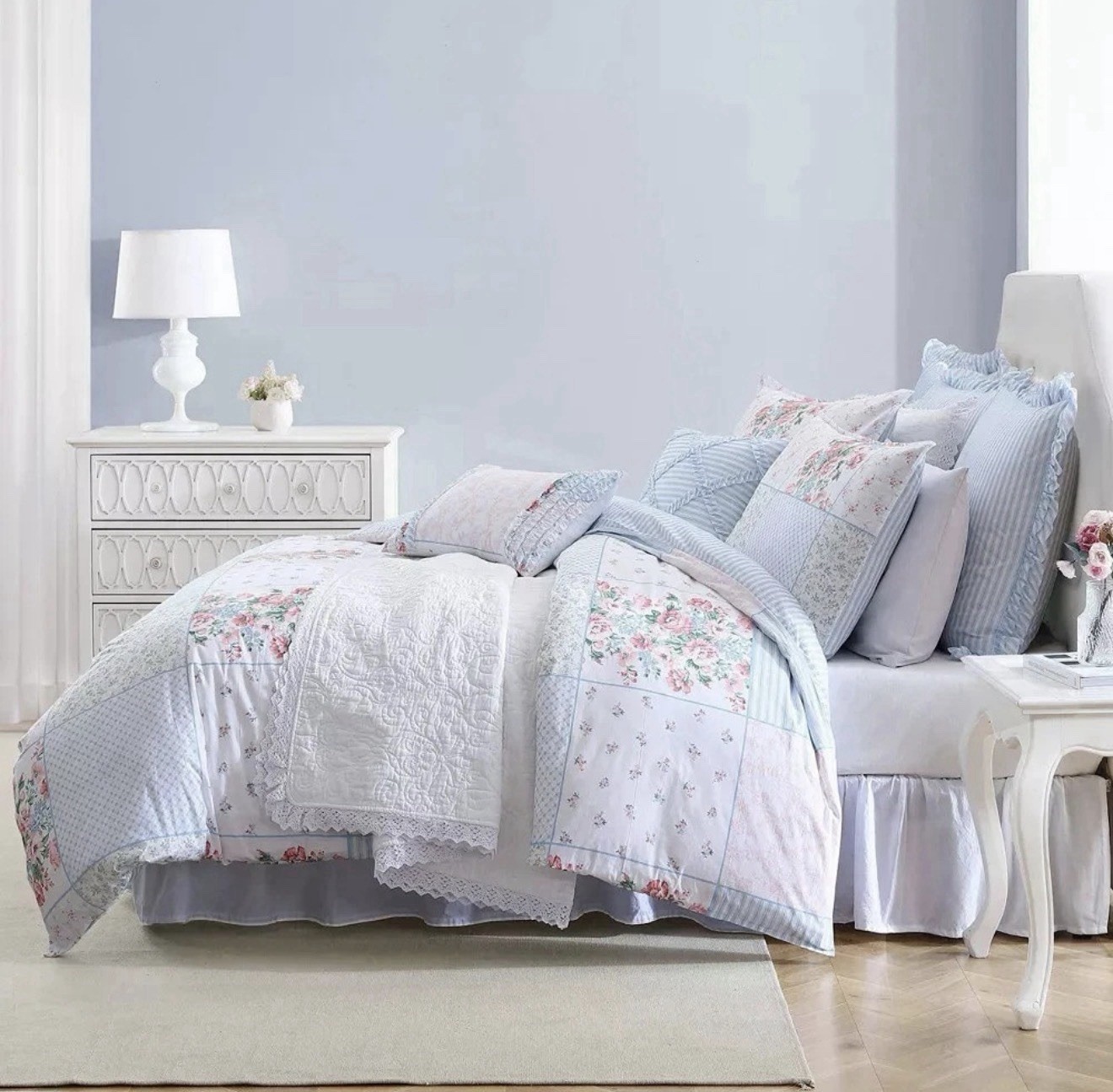 Laura Ashley 7pc Full/Queen Hope Patchwork Cotton Duvet Set NWT