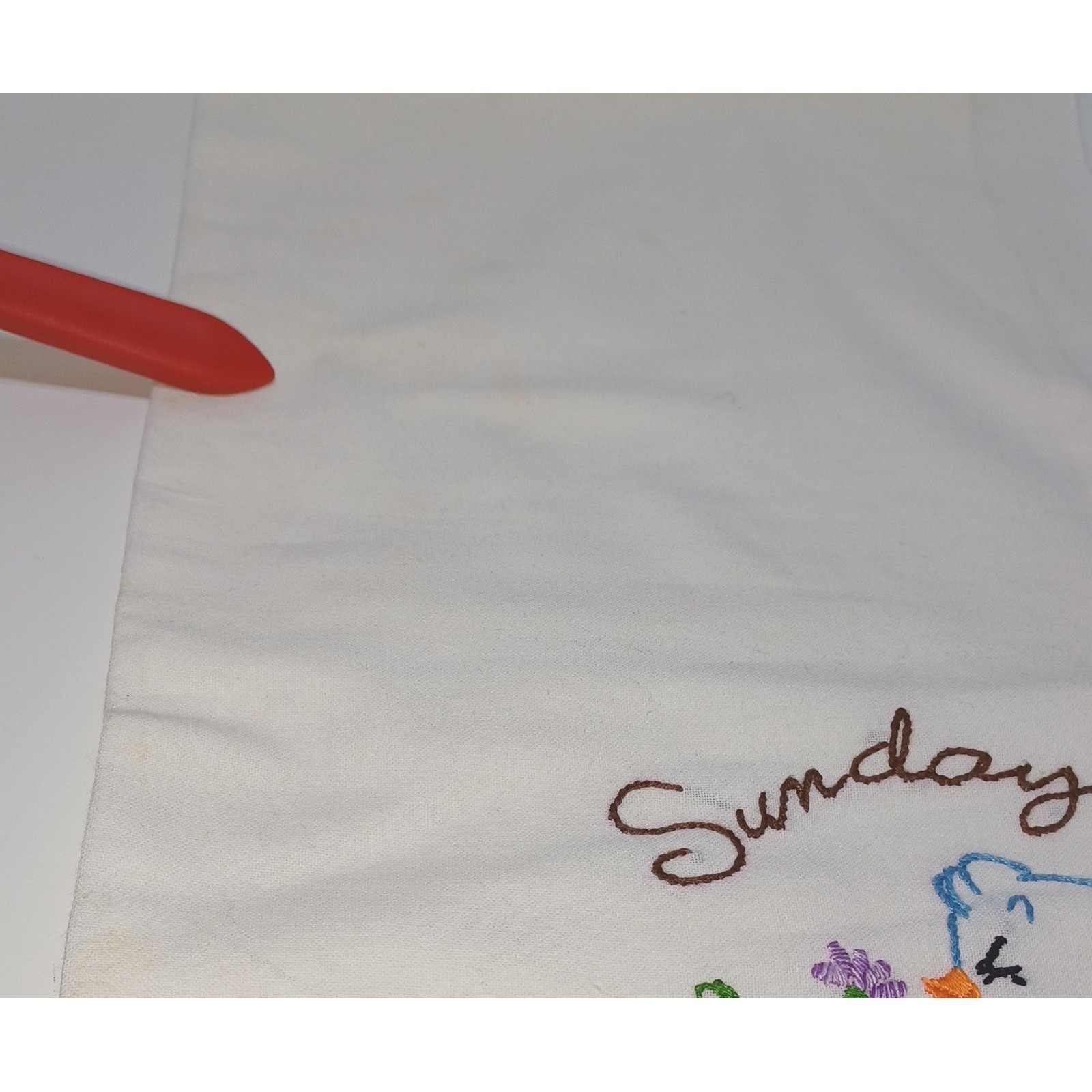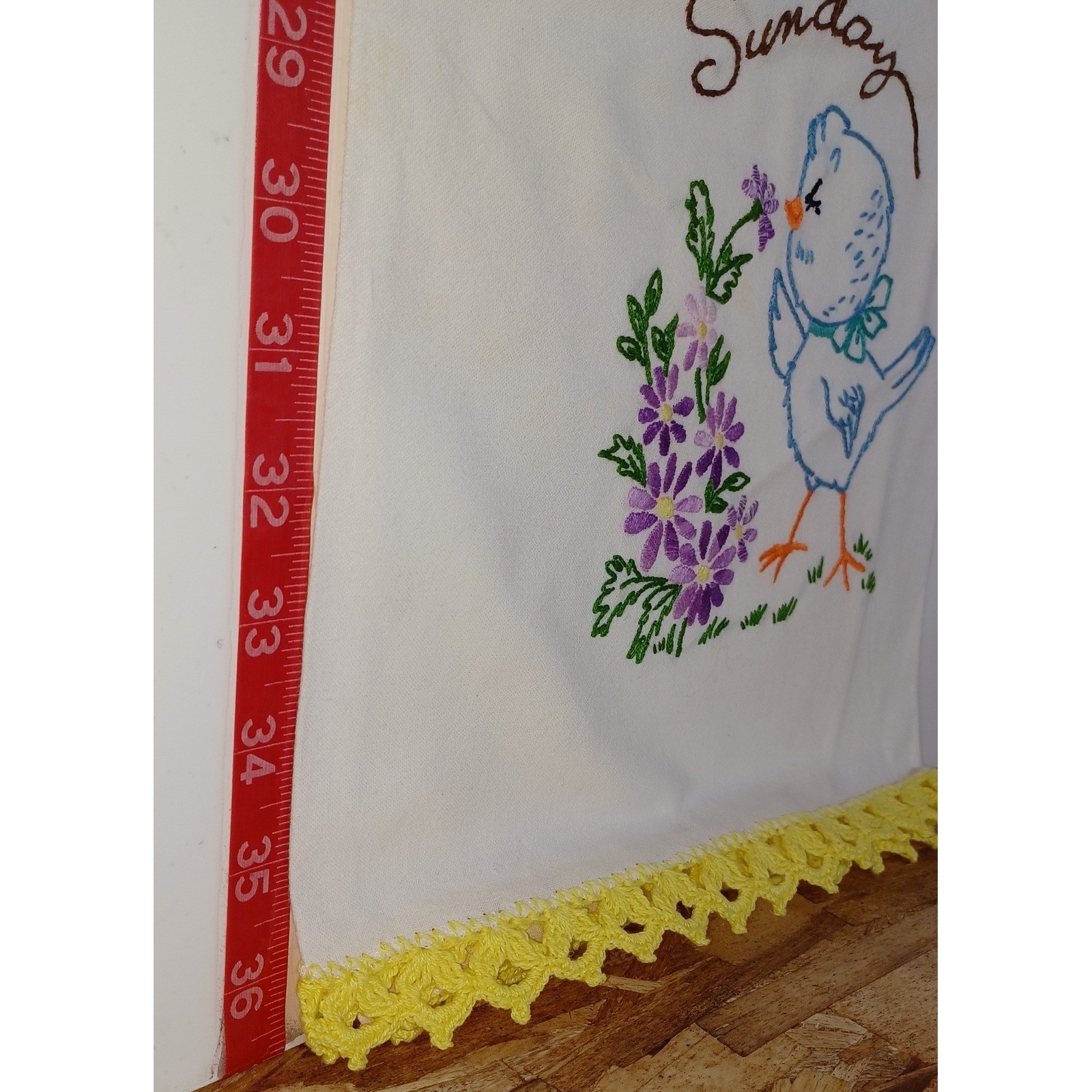 как выглядит VTG Embroidered Bird Kitchen Cotton Tea Towels 7 Days/Week Yellow Crochet Trim фото