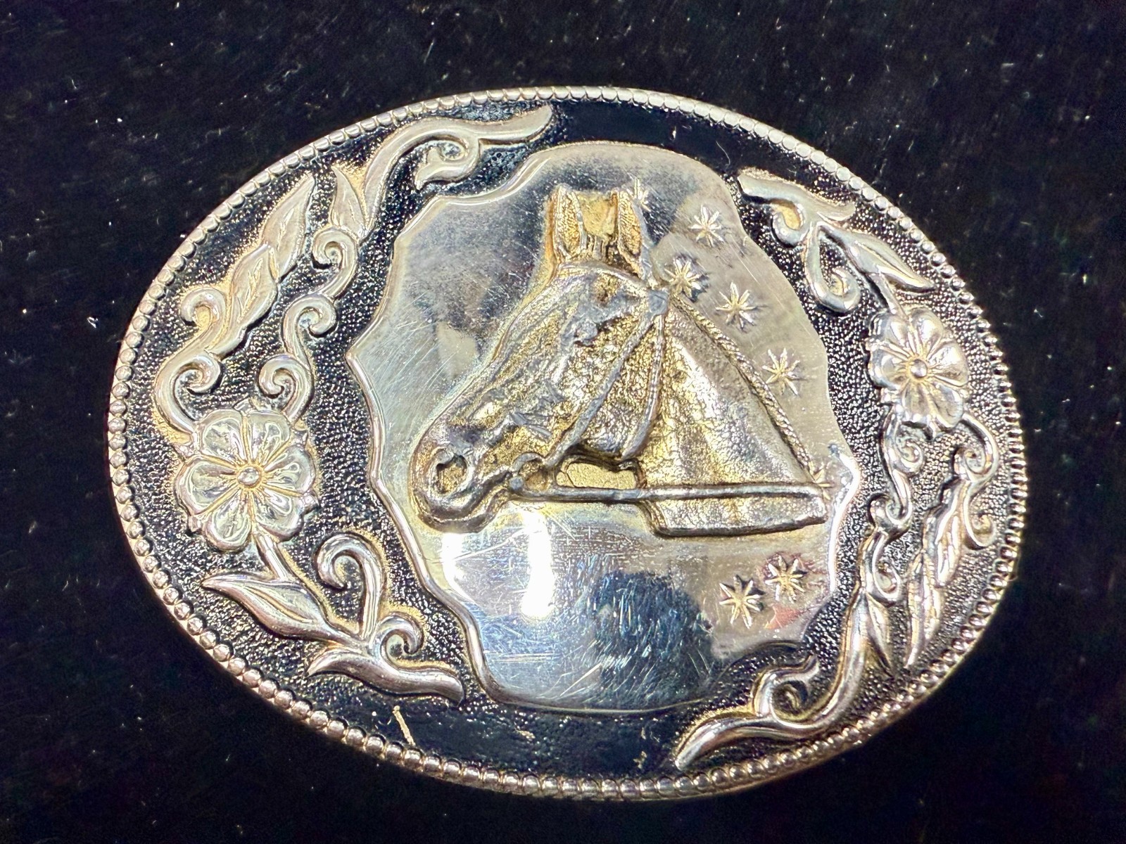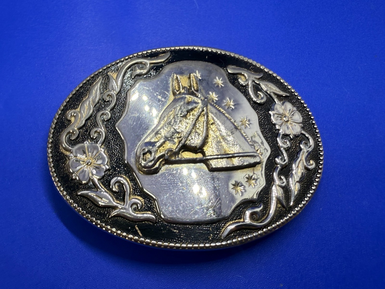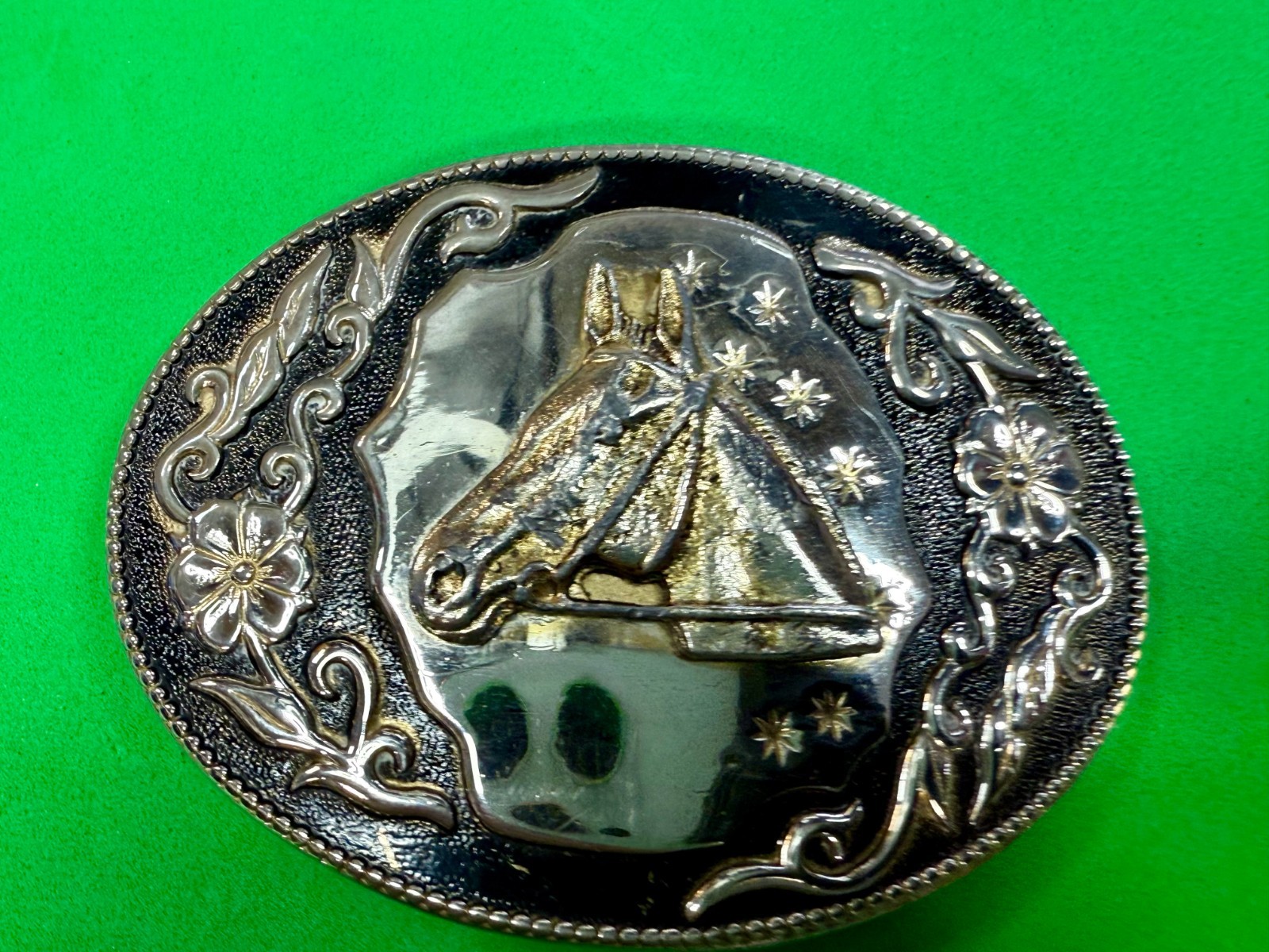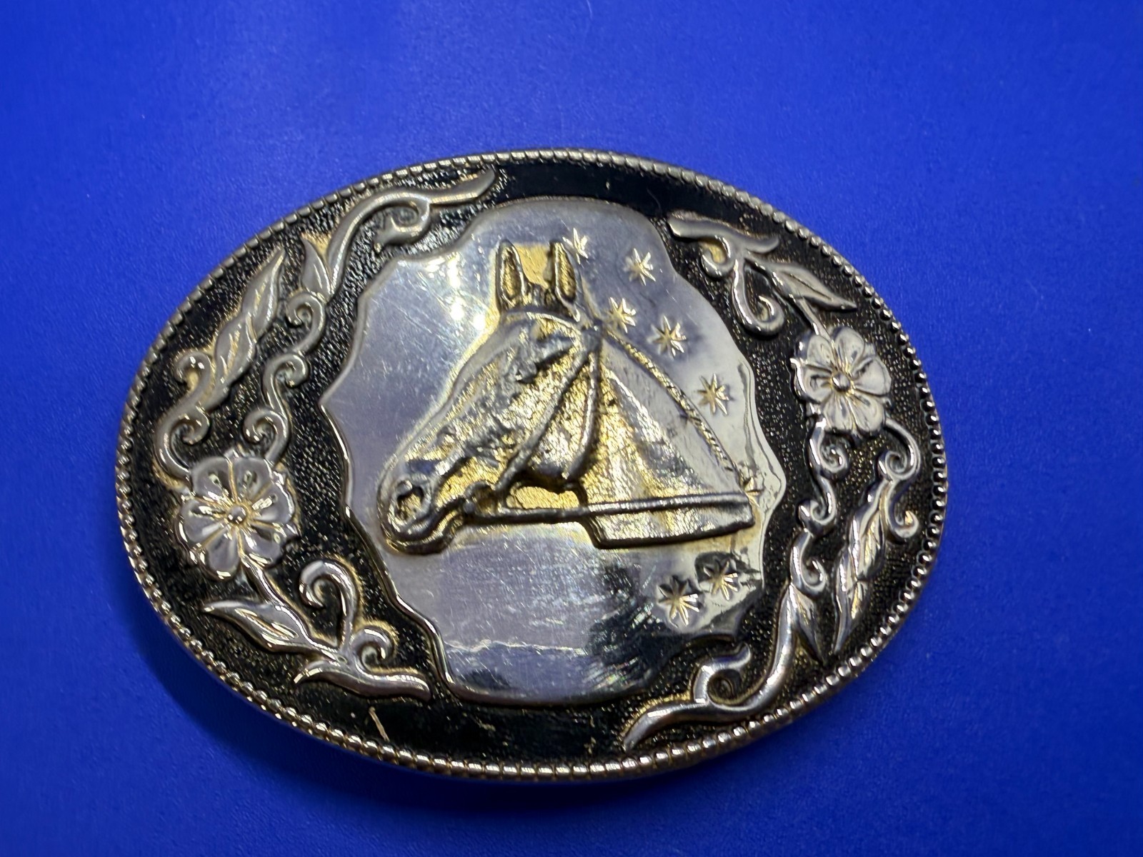 Horse Head Flower Swirl Ornate Western Rodeo Cowboy Gold Color Belt Buckle