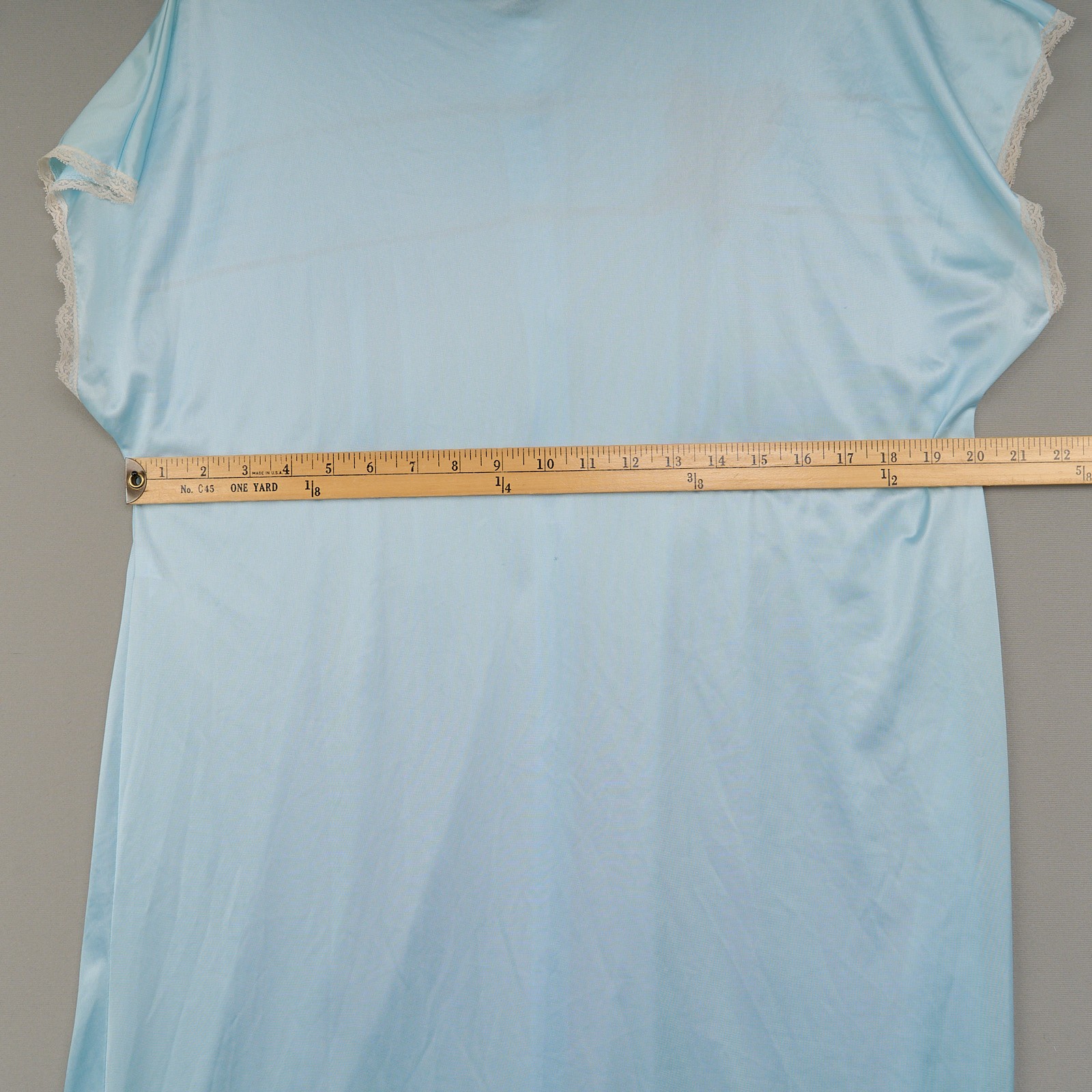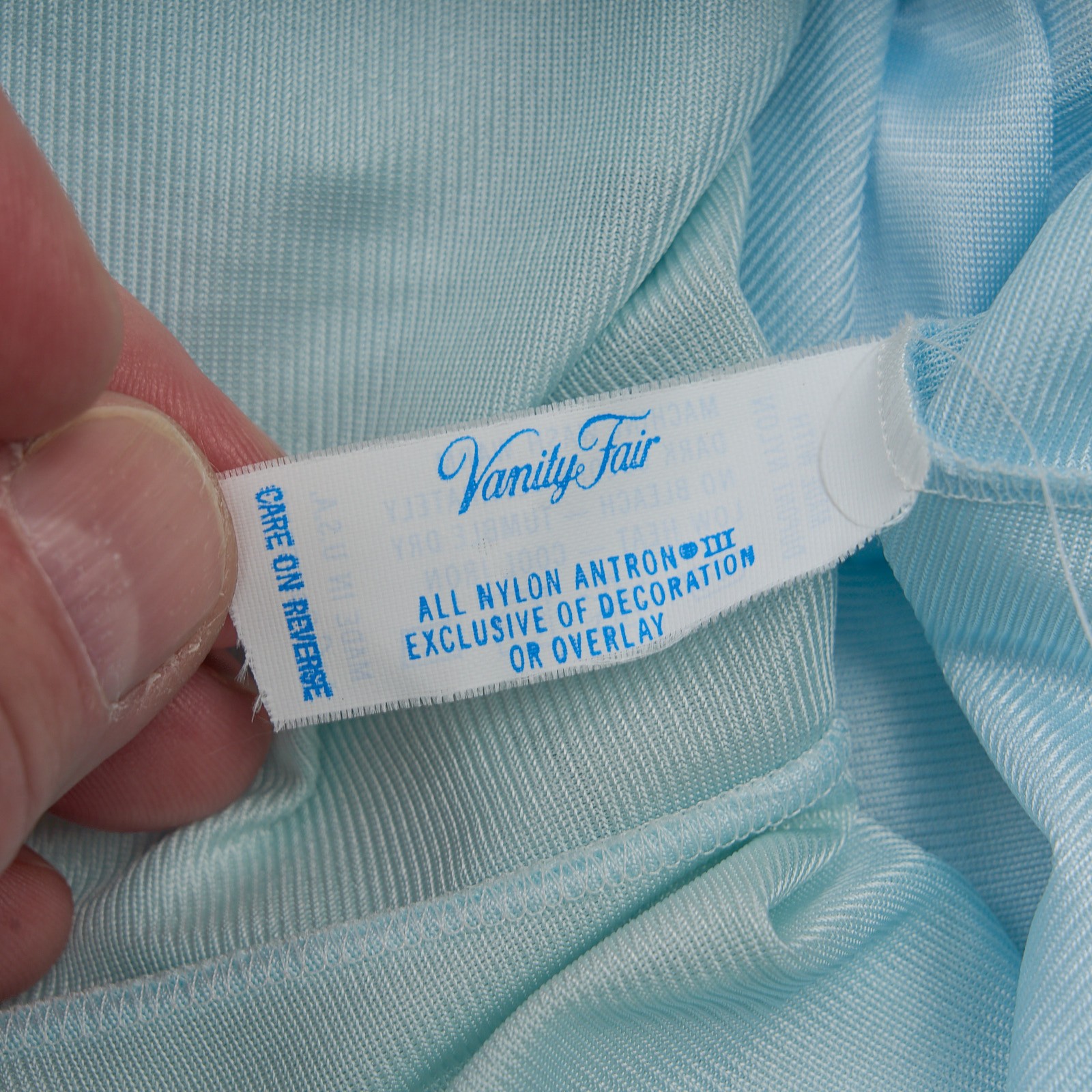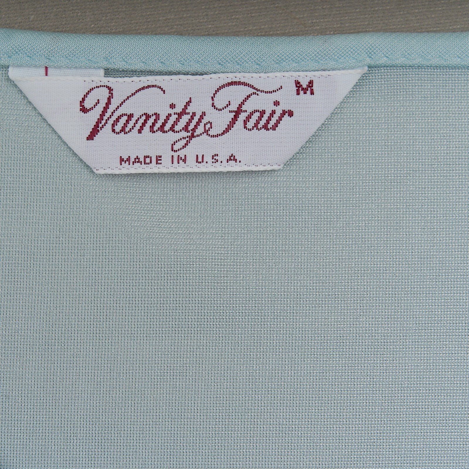 Vintage Vanity Fair Robe Womens M Blue Nylon Embroidered Bow Button Front
