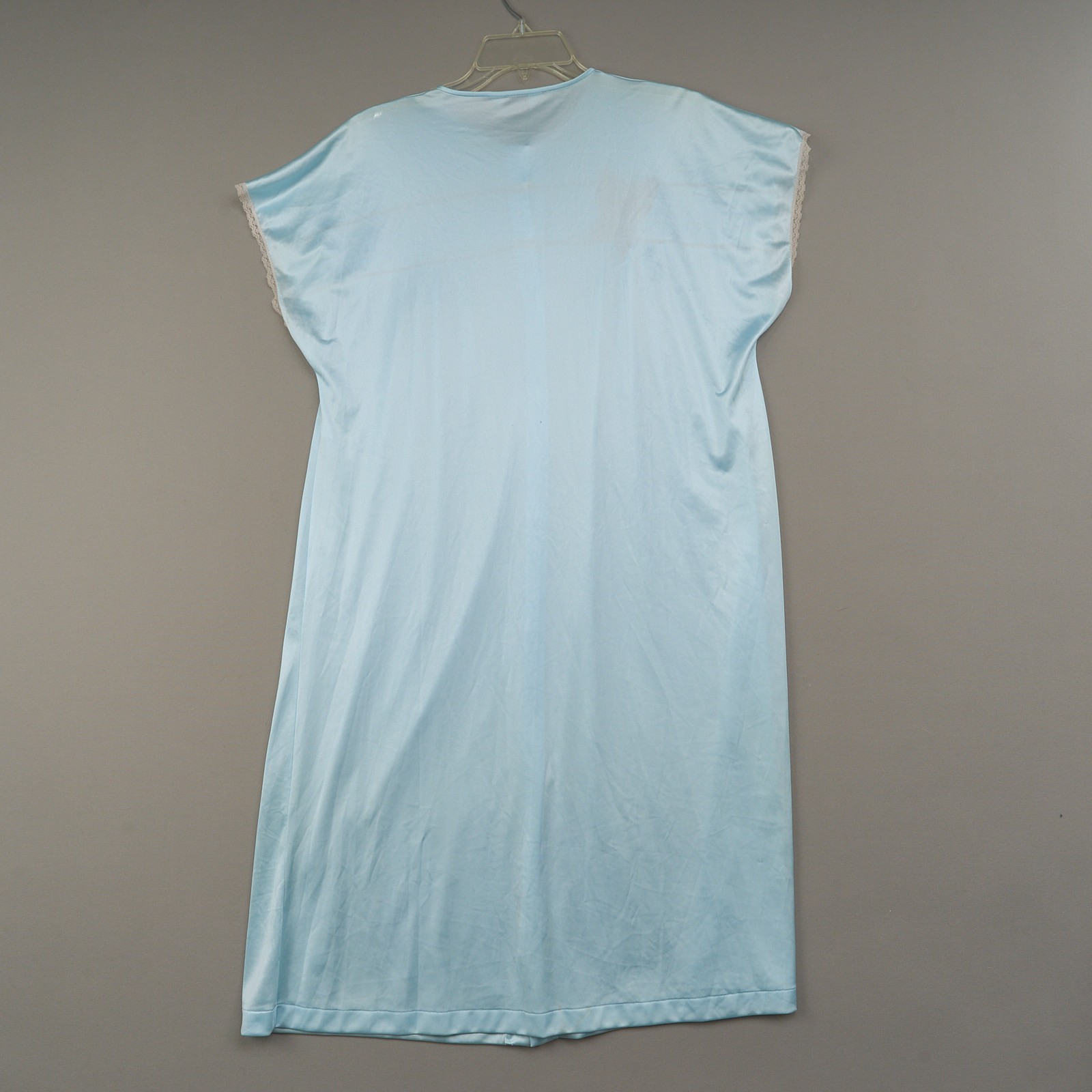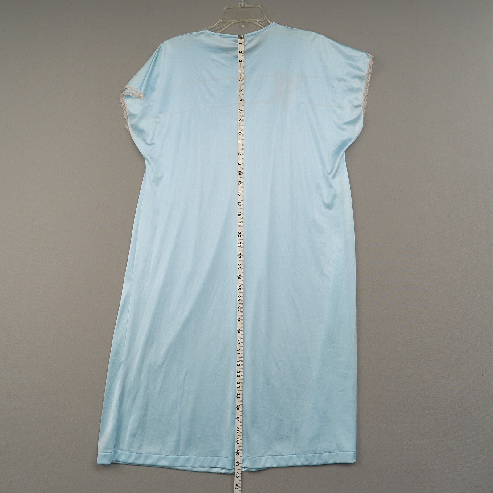 как выглядит Vintage Vanity Fair Robe Womens M Blue Nylon Embroidered Bow Button Front фото